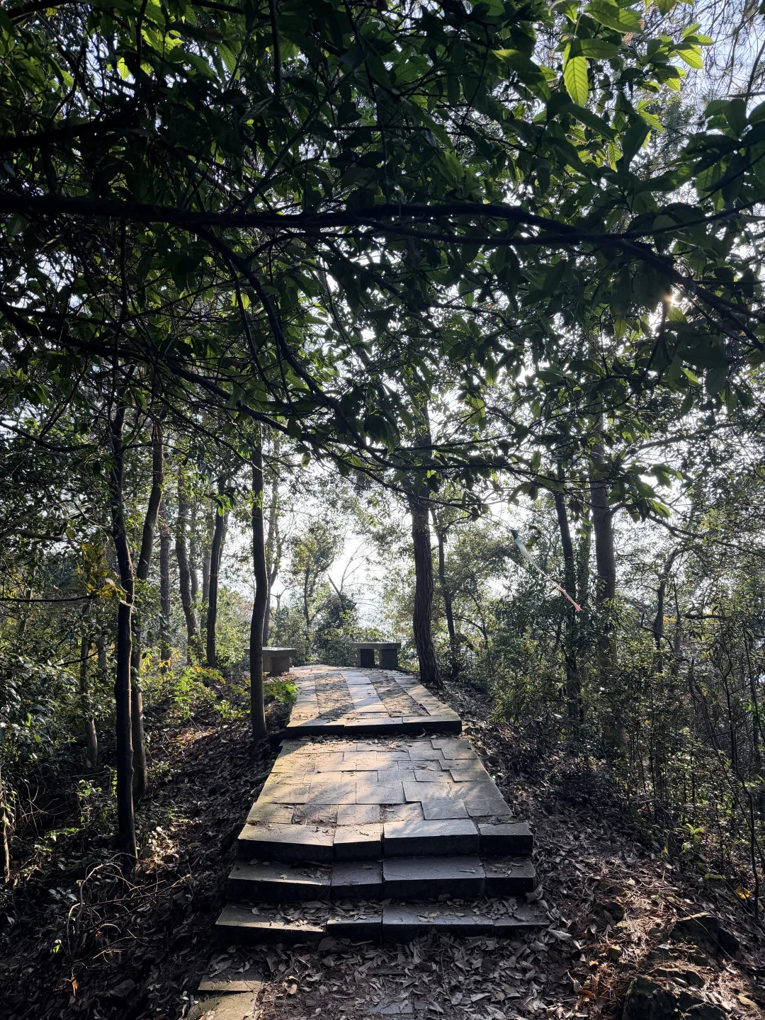 谁懂啊!杭州周边居然藏着这么一条有历史又好走的古道!5km环线全程无压力,亲子、新手都能冲,沿途竹林、水库、茶园连成片,走完全程还能炫地道豆腐皮,周末逃离城市太合适啦~ 📍导航:大洋坞水库(直接到古道入口,超方便) 🚗交通:杭州市区自驾1h,入口有免费停车场,路边也能停(别挡路哦) ⏰用时:2-3小时(边走边拍,节奏超舒服) ⛰️难度:★★☆☆☆ 爬升348米,石阶为主,少量土路 🗺️超省心5km环线: 大洋坞水库→东庵遗址→大德岭→山顶观景台→飞凤岩→鉴远亭→返回水库 全程不走回头路,路标清晰不用担心迷路!起点大洋坞水库真的美到失语,碧绿的水倒映着青山,被网友称为“杭州小九寨”,刚出发就忍不住狂拍📸 💡徒步亮点: ✔️千年古道有故事:隋唐时期就存在的古道,当年村民挑着“金衣”豆腐皮(薄如蝉翼的东坞山豆腐皮)运往杭州城,堪称富阳版“丝绸之路”,踩在苔迹斑斑的石阶上,像在读一段老时光 ✔️竹林秘境氧吧:大半路程都在竹林里穿行,古木参天遮天蔽日,风吹过竹叶沙沙响,空气里全是草木清香,深呼吸都觉得肺被净化了 ✔️山顶视野绝了:登顶大德岭后,能俯瞰漫山茶园和连绵山峦,天气好的时候还能望见远处的水库,累了就坐在观景台吹吹风,太治愈 ✔️小众不挤人:比起热门徒步线,这里人少清净,想怎么拍就怎么拍,不用避开人群 📝必备装备&小贴士: ✅ 穿防滑徒步鞋!部分石阶有青苔,雨天更要注意 ✅ 带1-2瓶水+少量零食(能量棒、坚果就行,山上没有小卖部) ✅ 防晒、帽子、驱蚊液别忘了,竹林里蚊虫多 ✅ 登山杖可选,下山能护膝盖 ✅ 垃圾随身带!古道超干净,要好好爱护呀 🍜下山必吃: 东坞山村的豆腐皮一定要尝!1300多年历史的非遗美食,薄如绢纱油润金黄,可做豆腐皮汤、炒青菜,村口农家乐都能吃到,鲜掉眉毛~ 还能买些真空包装的带回家 这条集自然美景和人文底蕴于一体的古道,真的值得N刷!周末不用赶早,睡个懒觉出发,慢悠悠走完全程,傍晚还能赶回家吃晚饭,主打一个轻松惬意~