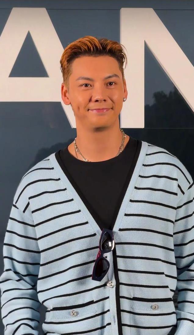 粉色的衬衣,胸前的山茶花和珍珠项链,浪漫和贵气扑面而来,相对而言,陈伟霆就有点太居家了。