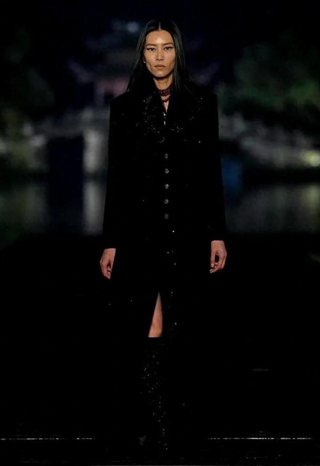 作为开场和领闭的刘雯,一身黑色穿搭帅到了极致。