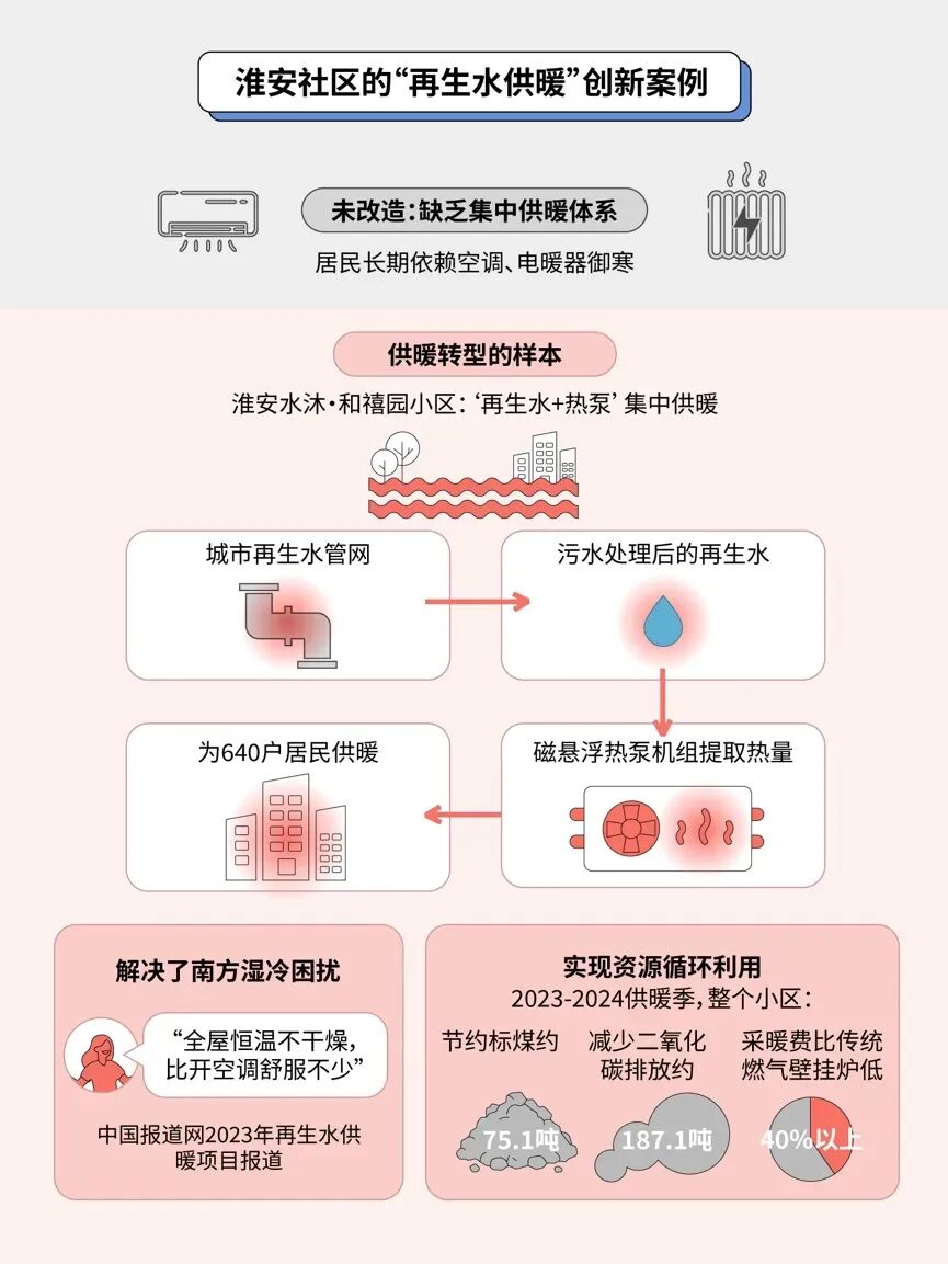 而曾获央视报道的淮安水沐・和禧园小区,则创新采用‘再生水+热泵’集中供暖模式,成为南方供暖转型的样本。