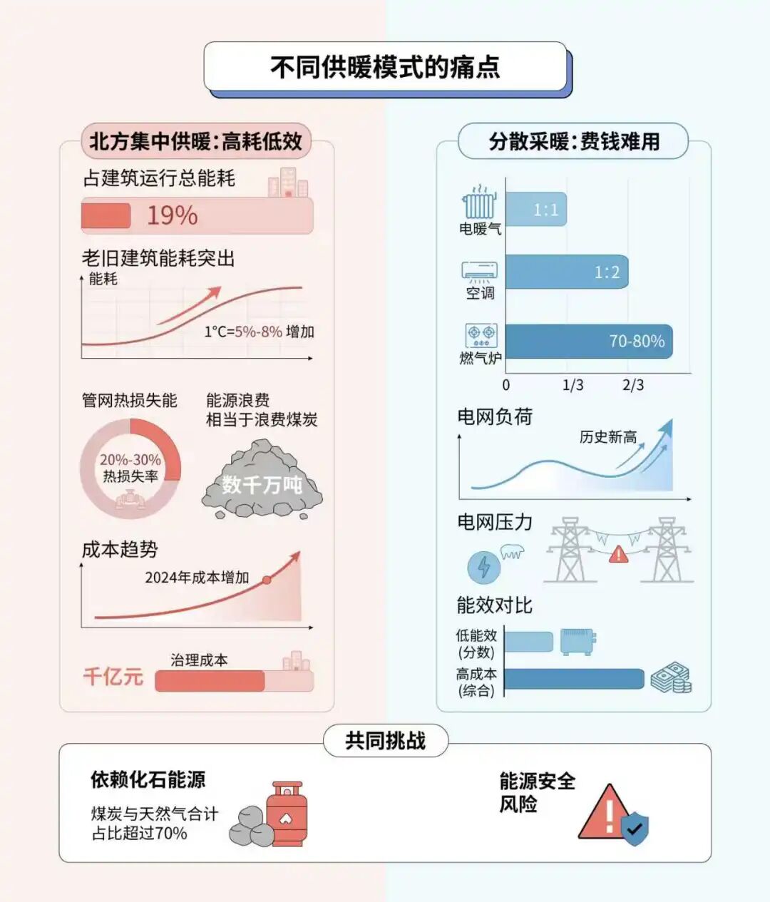 然而,无论是集中供暖的城市,还是自采暖的地区,南北各地都可能面临能耗偏高、能效偏低、经济负担偏重的三重困局,更藏着不容忽视的能源安全风险。