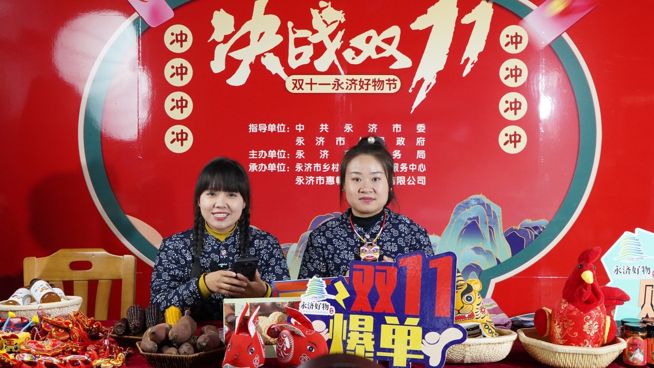 经过一个月的准备,永济市乡村e镇电商公共服务中心工作人员从选品到背景制作设计,从邀约网红到选定场地,进行了多方比较和方案优化。中国红底色的“决战双十一”背景板,不时响起的“链接已上”的声音,再加上惠畅非遗土布纺织车间内众多手艺工人“哒哒哒哒”的纺线和织布声音巧妙织就一幅“融合农文旅,贯通产加销”美妙画面。