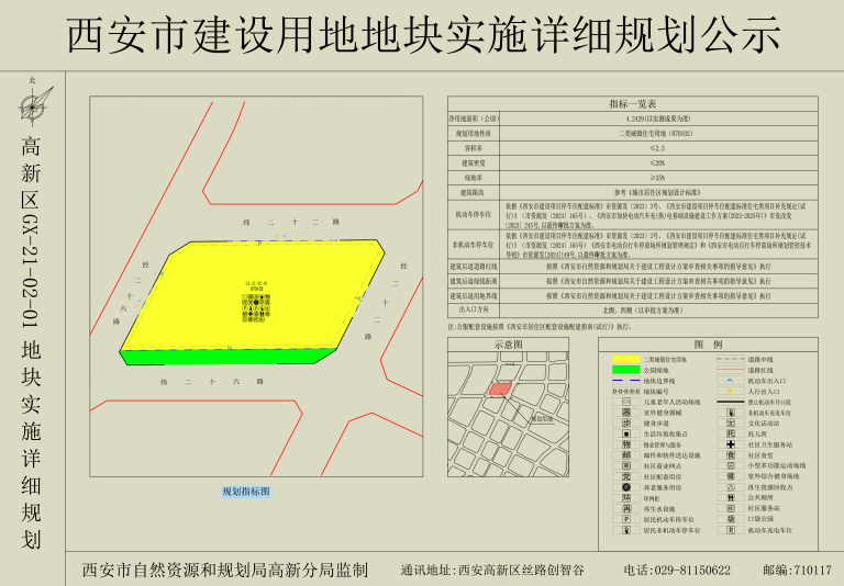 GX-21-02-01地块位于纬二十六路以北,经二十六路以东。地块具体指标如下:用地性质为二类城镇住宅用地(070102),容积率≤2.5,建筑密度≤20%,绿地率≥35%。