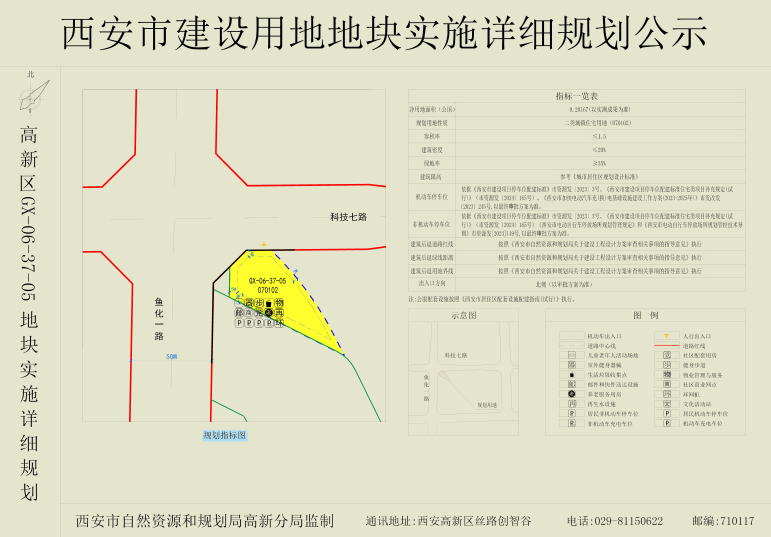 GX-06-37-05地块位于科技七路以南,鱼化一路以东。地块具体指标如下:用地性质为二类城镇住宅用地(070102),容积率≤1.5,建筑密度≤20%,绿地率≥35%。