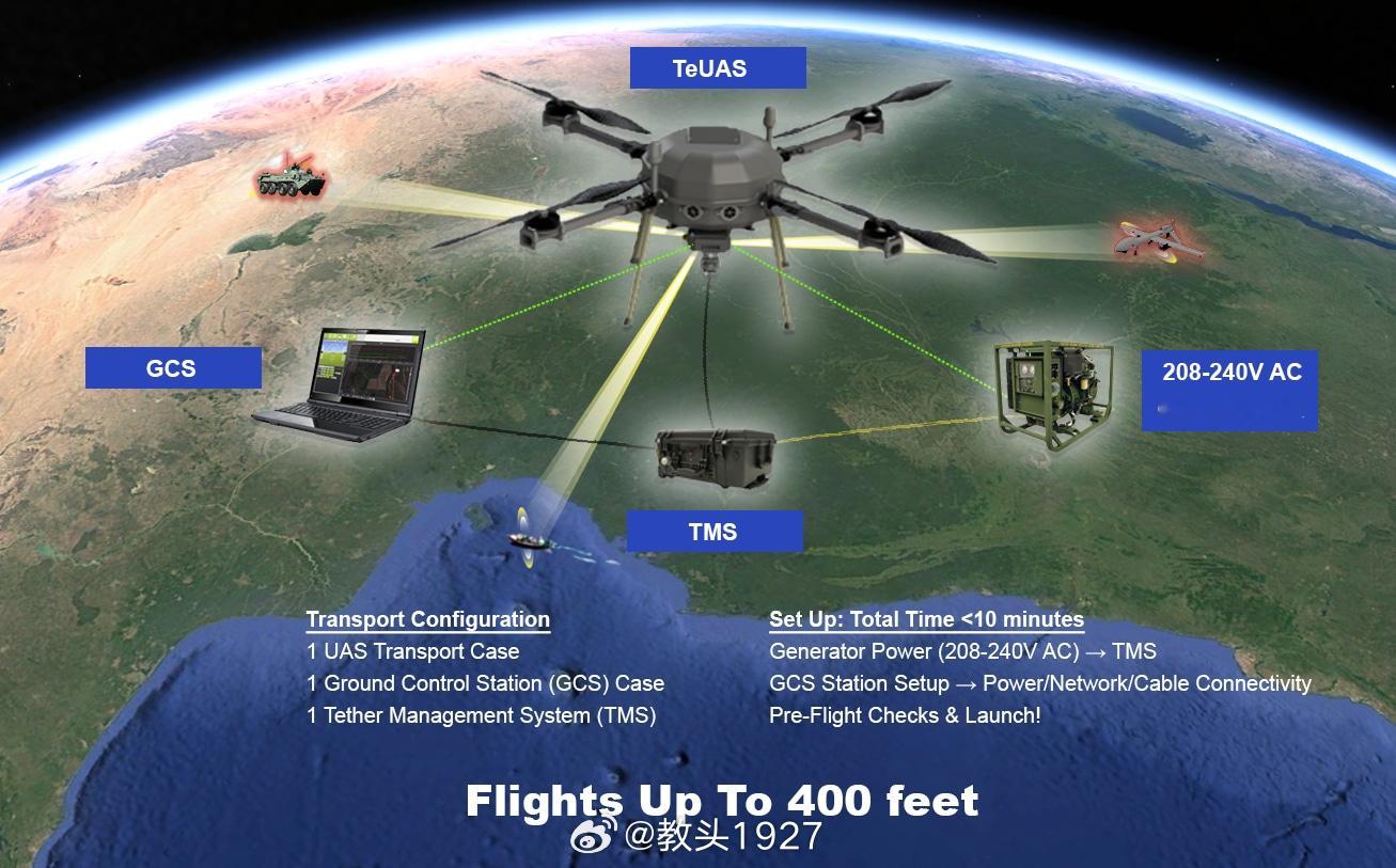 美国陆军测试配备电子战吊舱的系留式长航时无人机TCOM公司的系留式无人机系统于