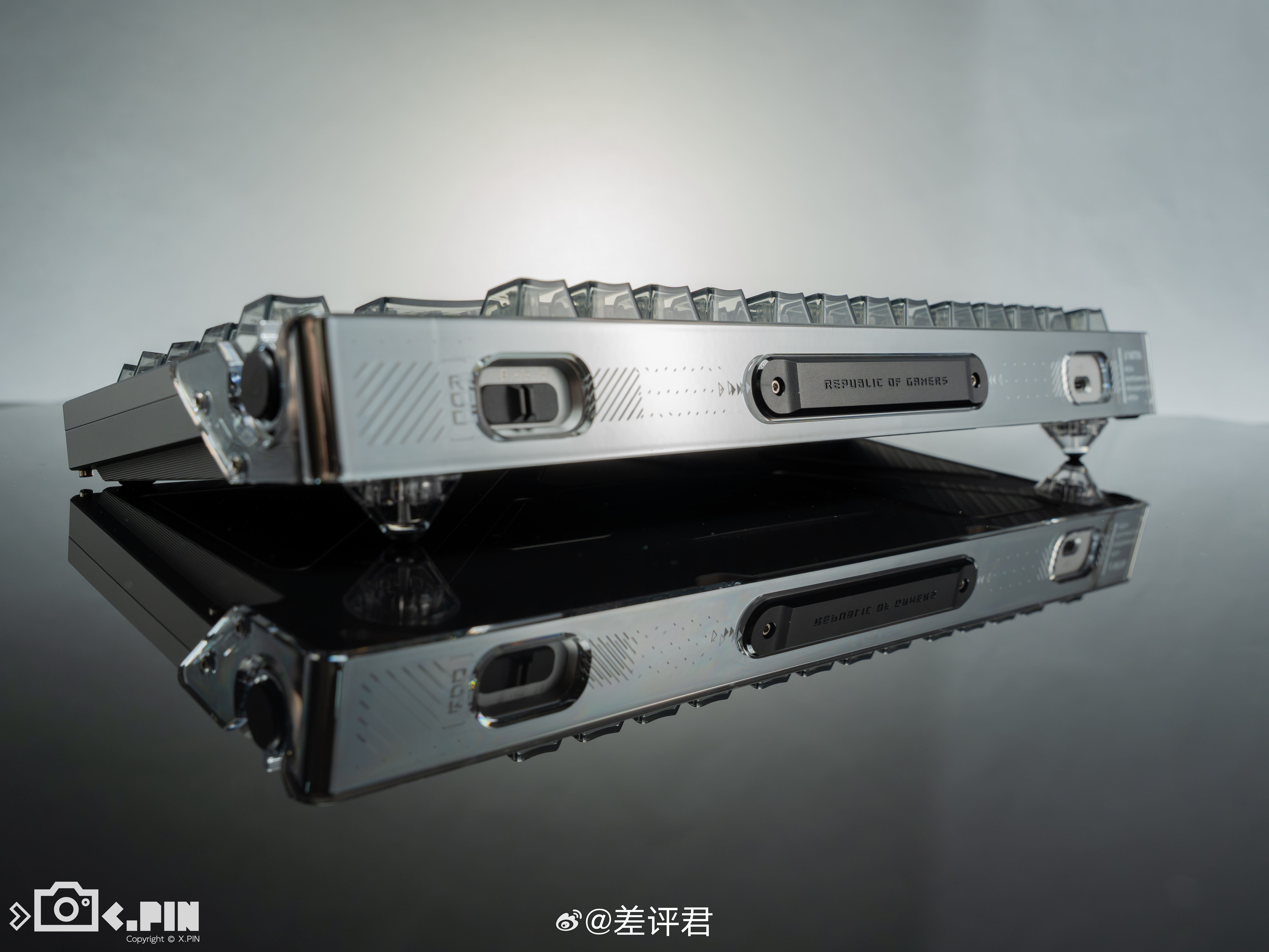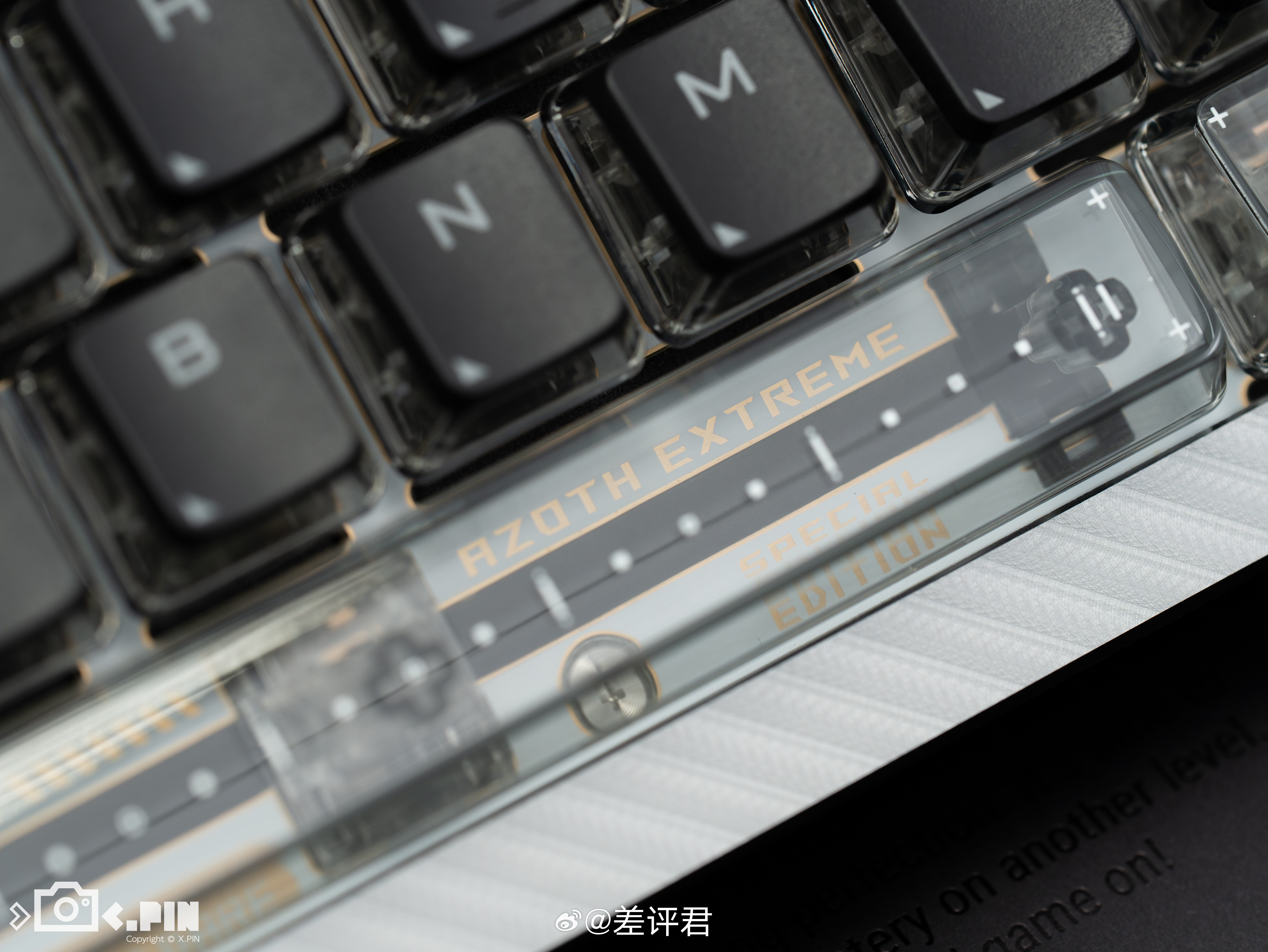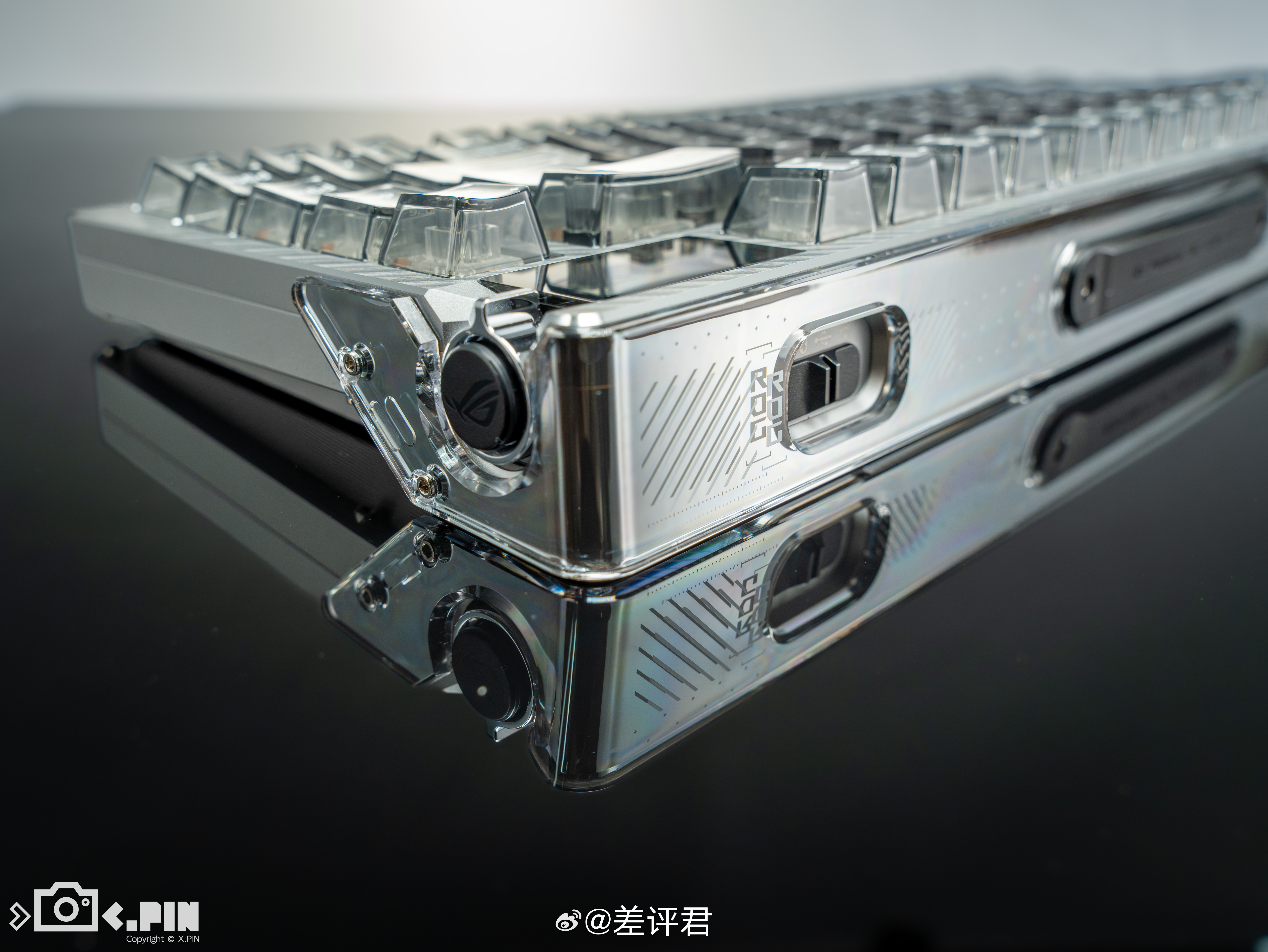 之前就眼馋 ROG 新出的这个夜魔 Extreme SE,拿到手发现做得是真可以啊,透明设计和金属外壳结合得很不错,就连脚垫都用上了透明磁吸的。另外 ROG 还给这批键盘定制了透明的轴壳,主打一个 RGB,但同时为了防止 RGB 一开看不清键盘,主键区特意用了高透PC+PBT结合的布丁键帽,这点好评。底壳中间的铭牌设计也很实用主义,打开来可以收纳无线接收器,同时里面有个拨片能调节 Gasket 手感。至于其他配置,这价格的键盘基本不用担心,FR4 定位板、ROG NX 机械轴、无线 8K 回报率啥的自然都安排上了。败家之眼是名副其实,但东西也确实好,感觉自用、富哥收藏、送人都蛮不错。哦对了,前两天我还从 ROG 那边薅了点周边回来,就顺带给大伙抽了吧,老规矩关注我+转发点赞,一等奖ROG电动螺丝刀,二等奖ROG朋克吸管随饮杯,三等奖天选姬鼠标垫,本周五 12 点开~