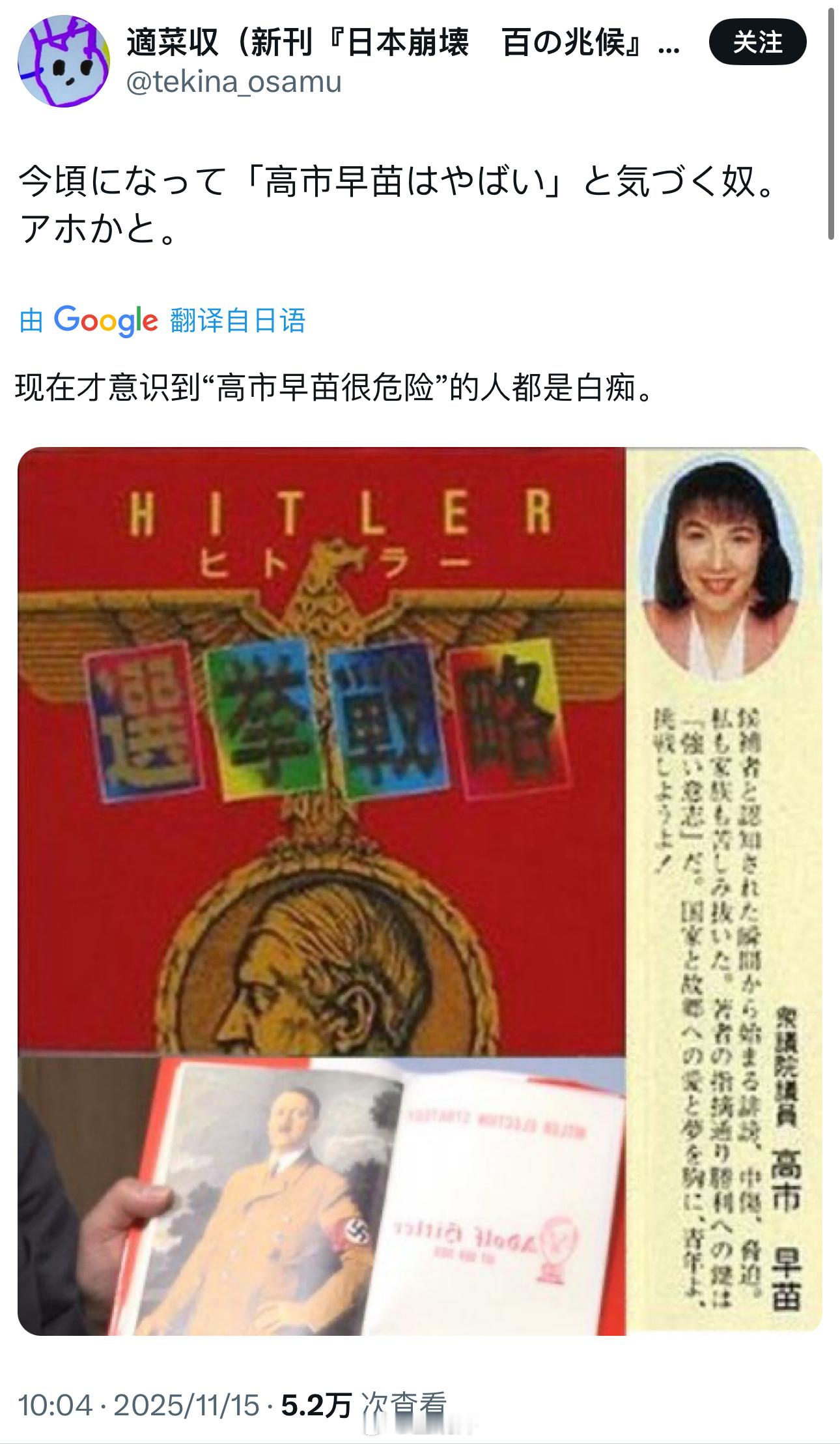 一半的日本人支持高市早苗“台湾有事日本有事”。