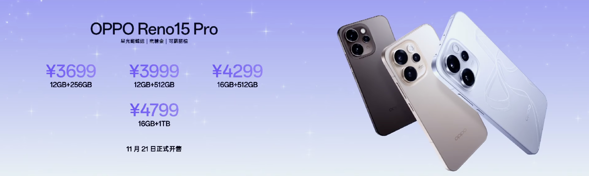 这一代Reno15系列总共有三杯,Reno15C在下个月上市,Reno15和Reno15 Pro是大小屏区分,两款Reno都有2亿像素主摄+5000W像素潜望长焦,Pro款主打大屏长续航直播,这一代Reno15系列的核心卖点是外观质感、影像系统、直播体验。