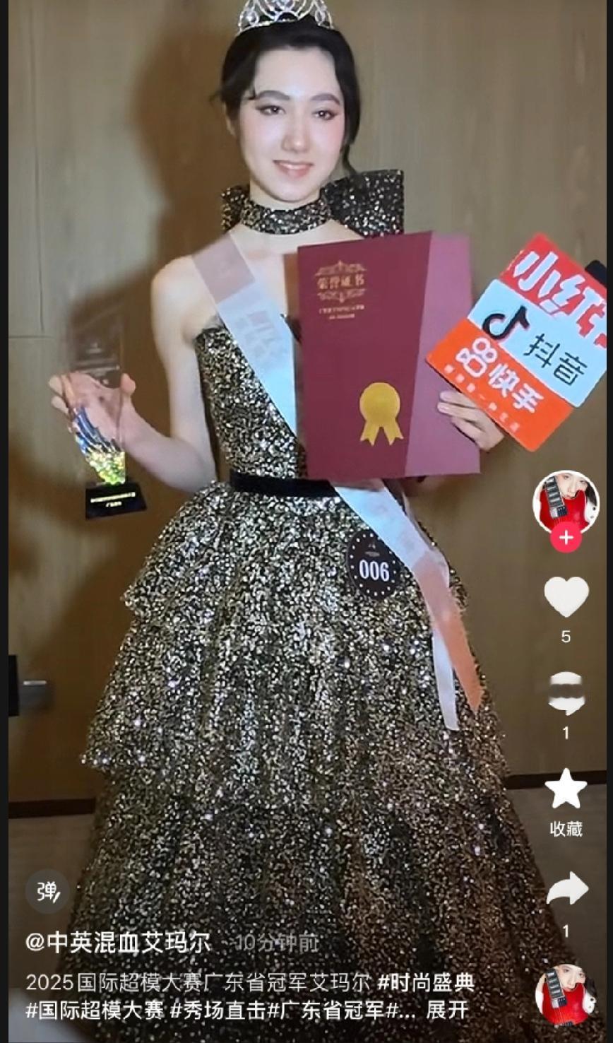 搞明白了,林大姐和艾玛尔都是模特大赛的冠军,但是两个不同的赛事。 中英混血美女艾玛尔参加的是2025国际超模大赛广东省冠军。 那位林大姐参加的是第28届国际模特大赛中国总决赛广东冠军。 两位佳丽都是所属赛事广东省的NO.1。 非老年组,林大姐可以啊,过关斩将取得了比赛的胜利,晚上做梦都得笑醒,也算梦想成真了吧!