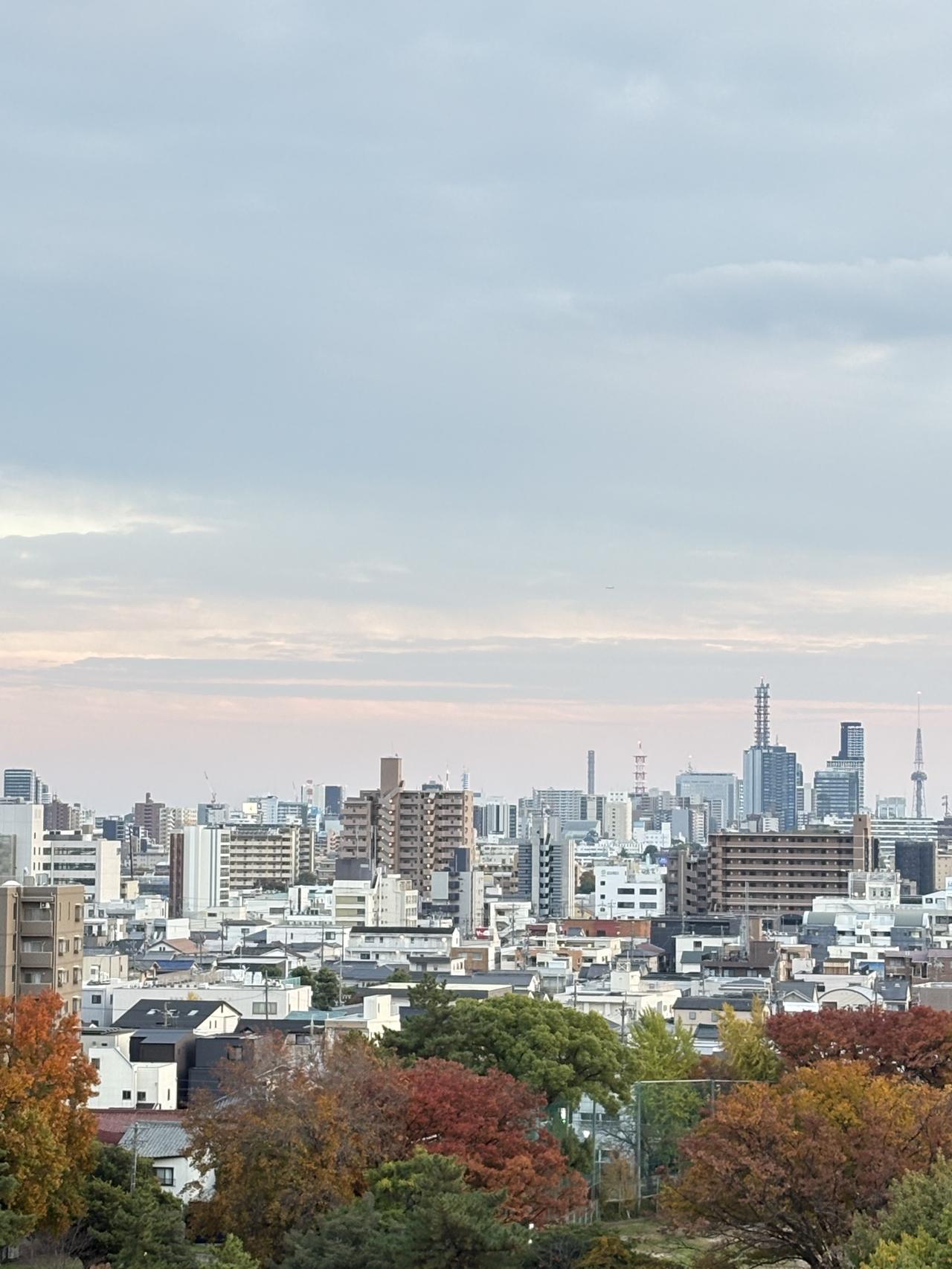 今日分享随手拍照片城市黄昏,云霞映照,红叶点缀,高楼林立,云层低垂,宁静而美丽。