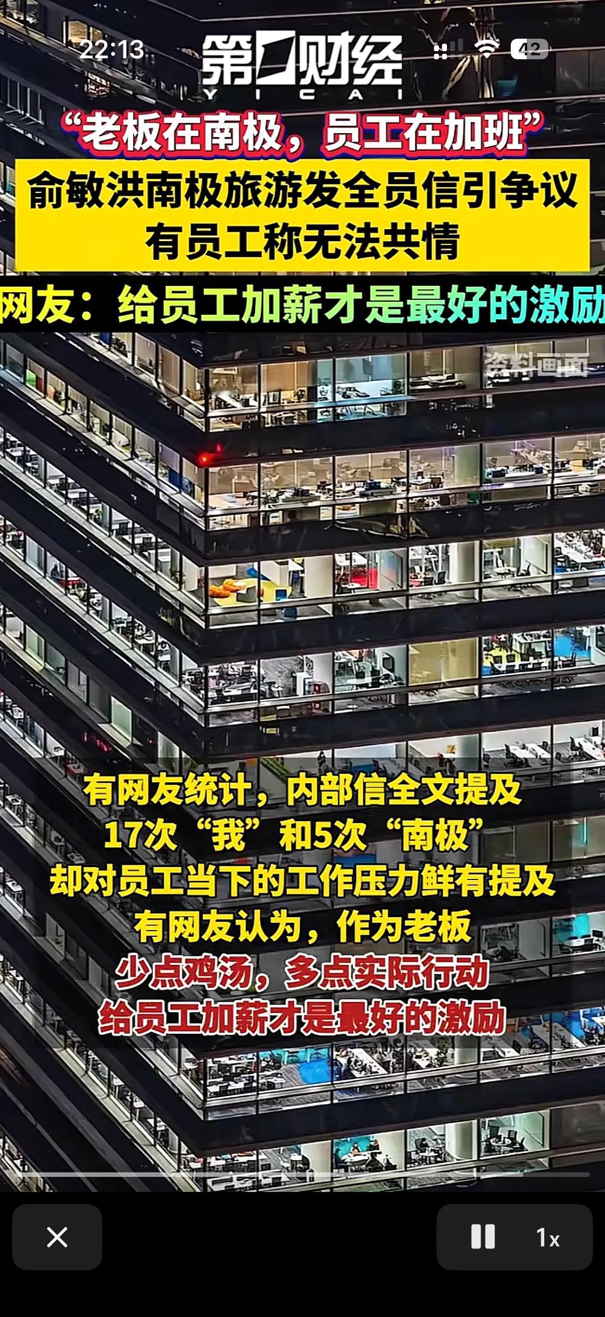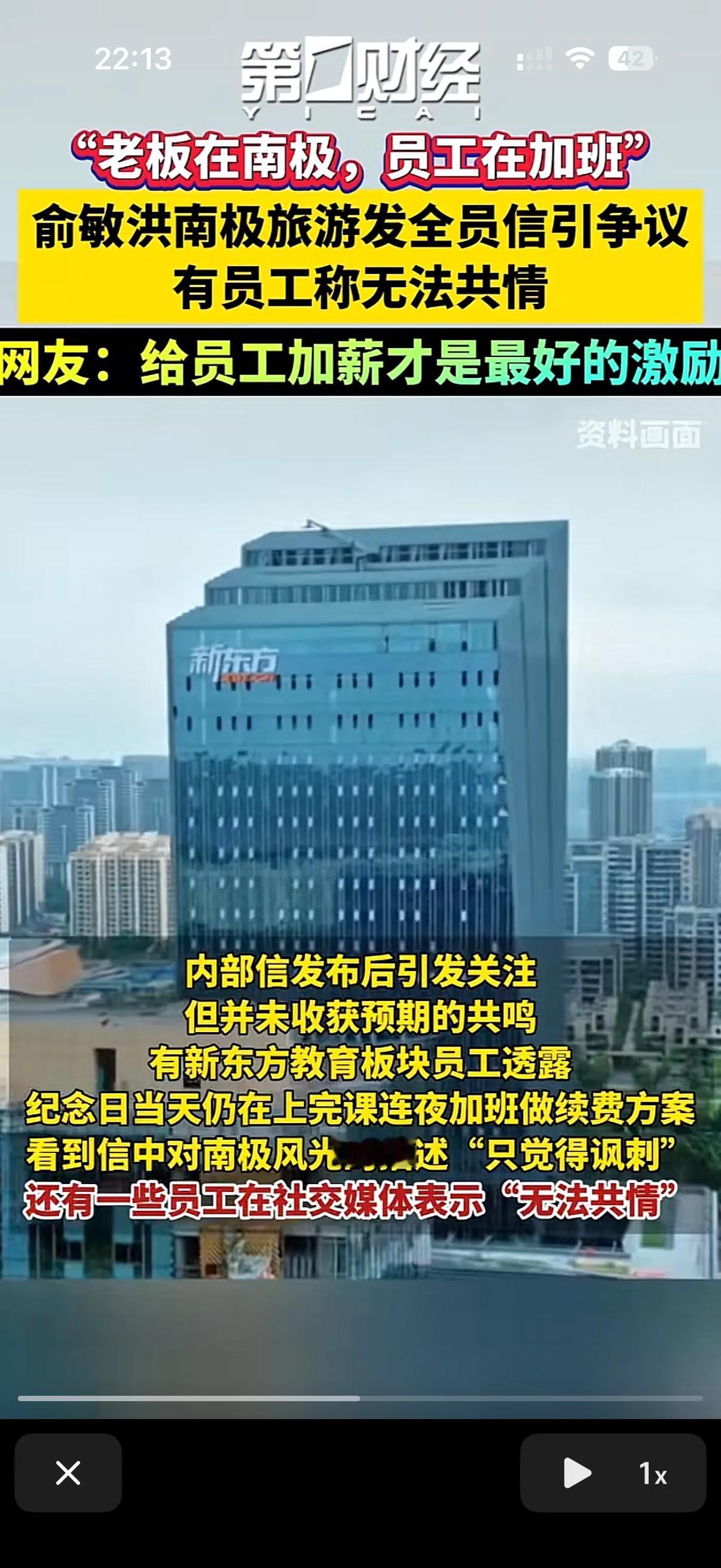 你在寒冬的夜里加班嫩体会在南极旅游老板的心情么? 我相信大多数人都无法共情老板的快乐! 日前新东方内部的一封信流出来的时候,引起广大打工人的共鸣,不过不是好的方面共鸣! 就是新东方的教育板块的员工在上完课一天的时候,晚上加班的时候收到老板俞敏洪的内部信,信件里描述这南极美好的景色! 并且点出了南极的寒冷,和企鹅的坚持,鼓励员工要像冰雪中的坚守一样努力工作! 不少员工表示无法共情,现在员工都是越来越讨厌老板画饼的鸡汤了,说实话,当时俞敏洪给加班的员工点一杯奶茶的效果都要比这封激励信更实际的多! 你是去南极玩去了,可是这帮加班的员工深夜回家的时候可是真的会体会夜里的寒风有多冷! 不谈报酬只谈贡献就是耍流氓!