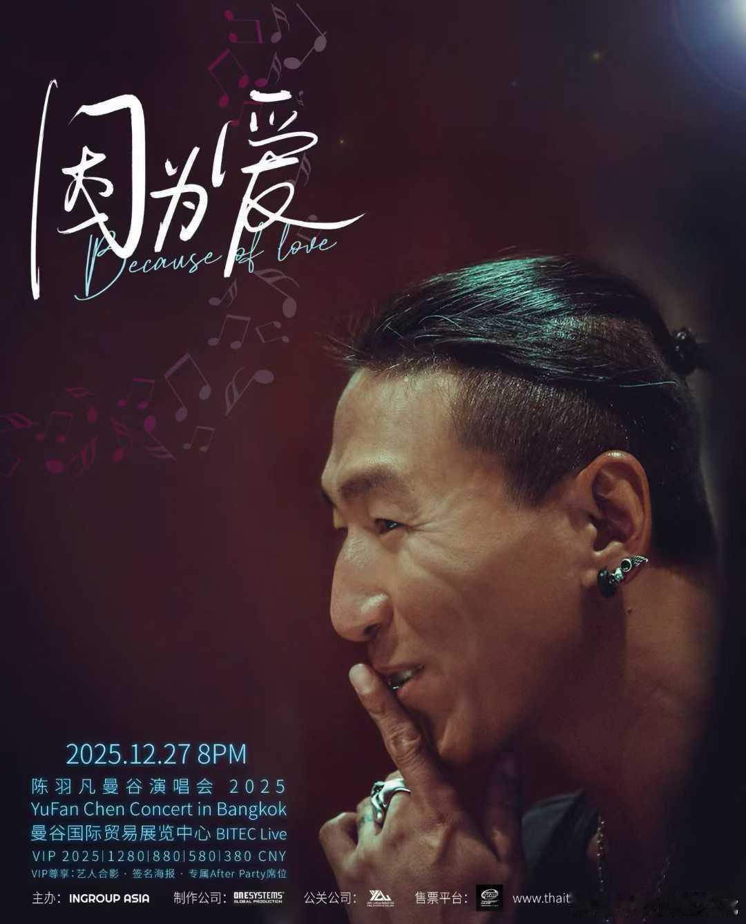 『因为爱』2025演唱会 📍泰国·曼谷 正式官宣🔥12月27日🎙️重温青春 拥抱感动✨共赴跨越山海的音乐之约✨ 时光流逝的飞快,更因心中的思念而倍感漫长…无数个日夜的期待,终于等来了这一次的久别的重逢…感恩有你One love[爱心]