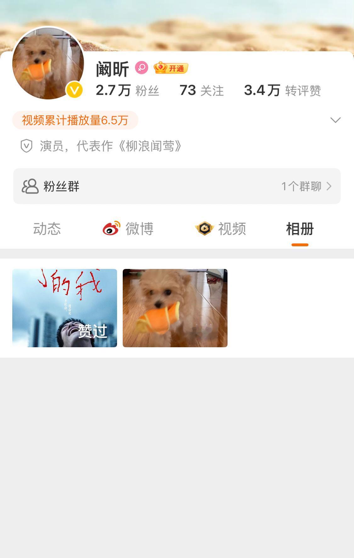 阚昕最近怎么了? 怎么微博视频和相册空空? 抖音也无任何作品展示?