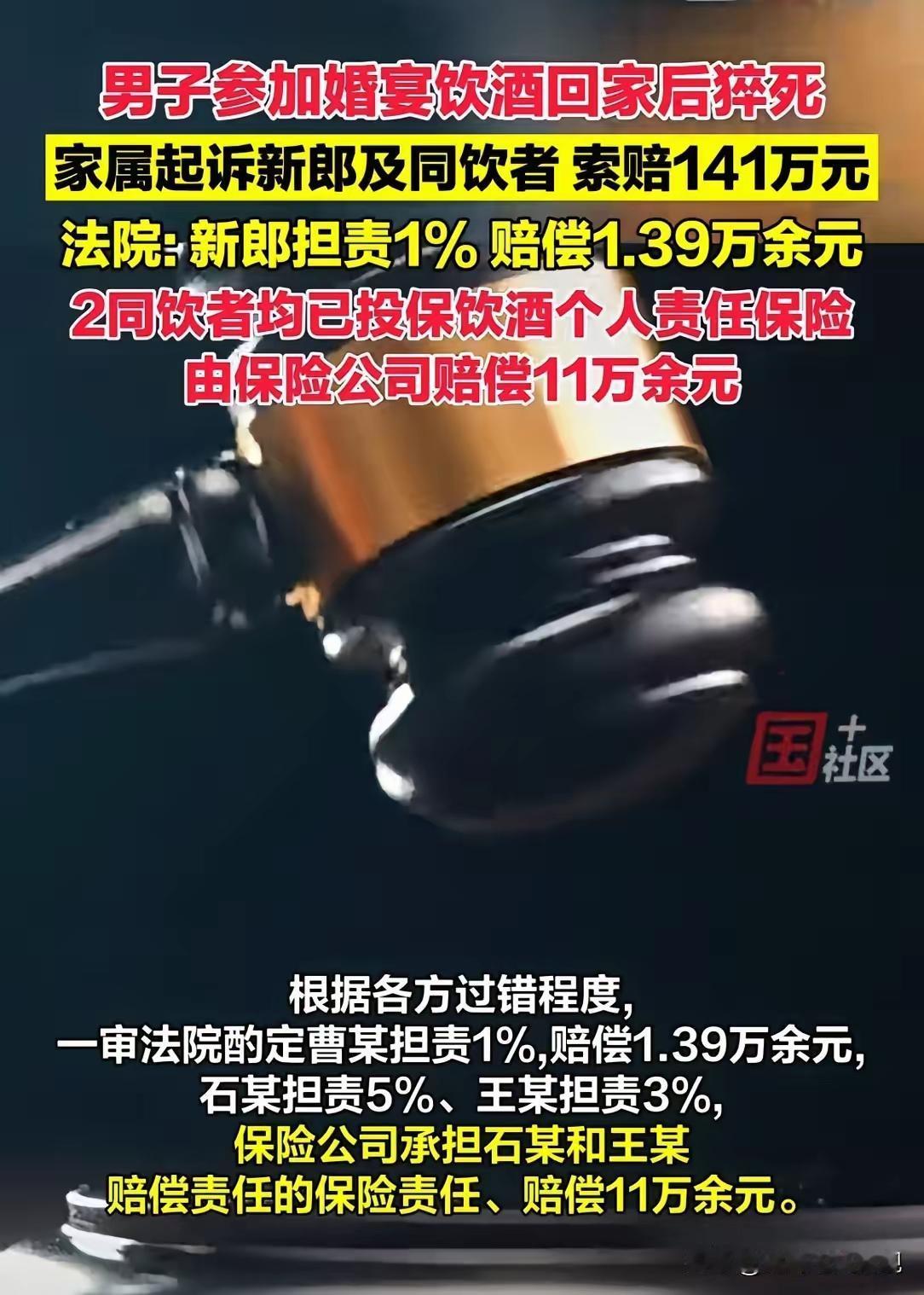 根据您提供的详细案情介绍,法院的判决体现了法律对各方责任的认定和责任比例的合理分配。以下是案件的核心分析和判决依据的总结: 一、案件背景 拓某(死者)参加好友曹某的婚宴,饮酒量超过平时,喝了4杯半白酒,无劝酒或强制行为,属于自主行为。 婚宴结束后,他又与石某、王某在烧烤摊饮酒,少量啤酒后提前离开,离开时身体正常。 第二天早晨,拓某被家人发现死亡,鉴定为心源性猝死,家属质疑饮酒行为是导火索。 二、责任主体分析 拓某 作为成年人,有完全民事行为能力,知道自己饮酒量,且明知身体状况良好。 自愿饮酒,存在明显的过错,是引发猝死的主要原因。 法院认为拓某应承担主要责任。 新郎曹某 作为婚宴组织方,具有合理的安全注意义务。 在合理范围内没有主动劝酒或强制行为,但组织饮酒场合应提示客人注意身体健康,预防过量。 判定有轻微过错,责任为1%。 石某 在拓某已喝大量白酒后,仍邀请其继续喝啤酒,预见或应预见到风险。 责任较大,判定为5%。 王某 作为共同饮酒人,未尽到提醒义务,责任较小,判定为3%。 二、保险公司 保险条款符合案情,保险公司承担相应赔偿责任。 承担总赔偿金11万余元。 三、法院判决 责任比例:曹某1%、石某5%、王某3% 具体赔偿金额:曹某支付约1.39万元,保险公司赔偿剩余部分。 结论:主要责任在于拓某的过量饮酒行为,其他责任人因存在一定过错而承担相应责任。 四、法律依据 《民法典》第1165条:行为人因过错侵害他人民事权益应承担责任。 《民法典》第1173条:受害人(拓某)有过错时,责任可以减轻。 责任分配考虑了行为人的过错程度与实际情况。 五、总结 尽管刘某(拓某)过量饮酒是事故的主要原因,但作为组织者和共同饮酒者,也应尽到合理的提醒和保护义务。 法院合理划分责任比例,体现了对成年人自主行为的尊重,同时也强调了组织者的注意义务。 六、启示 聚餐饮酒应注意安全,理性控制酒量。 组织者应履行合理的注意义务,避免过度饮酒、危险行为。 情谊不可逾越安全底线,理性饮酒,保护自己和他人。 如需更详细的法律分析或相关法律条文解读,请告知!民事责任判定 推定判决