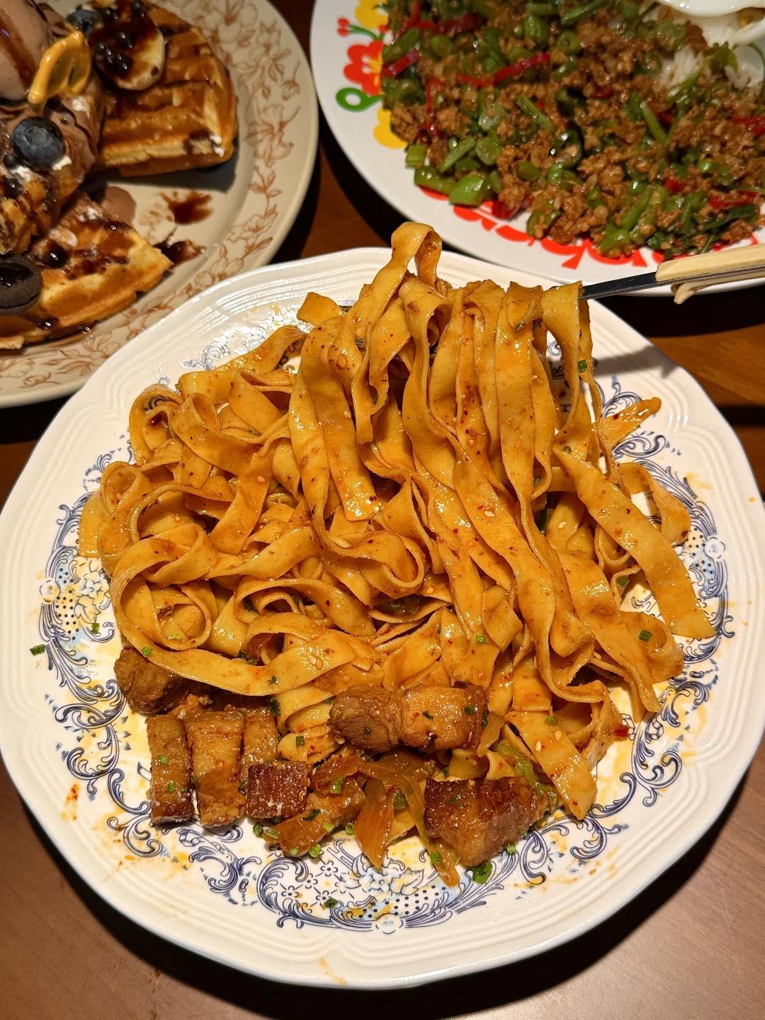 老爸做的牛腩老妈做的梅菜扣肉太幸福了,当然还留了一部分吃不了就得兜走哈!每次都是