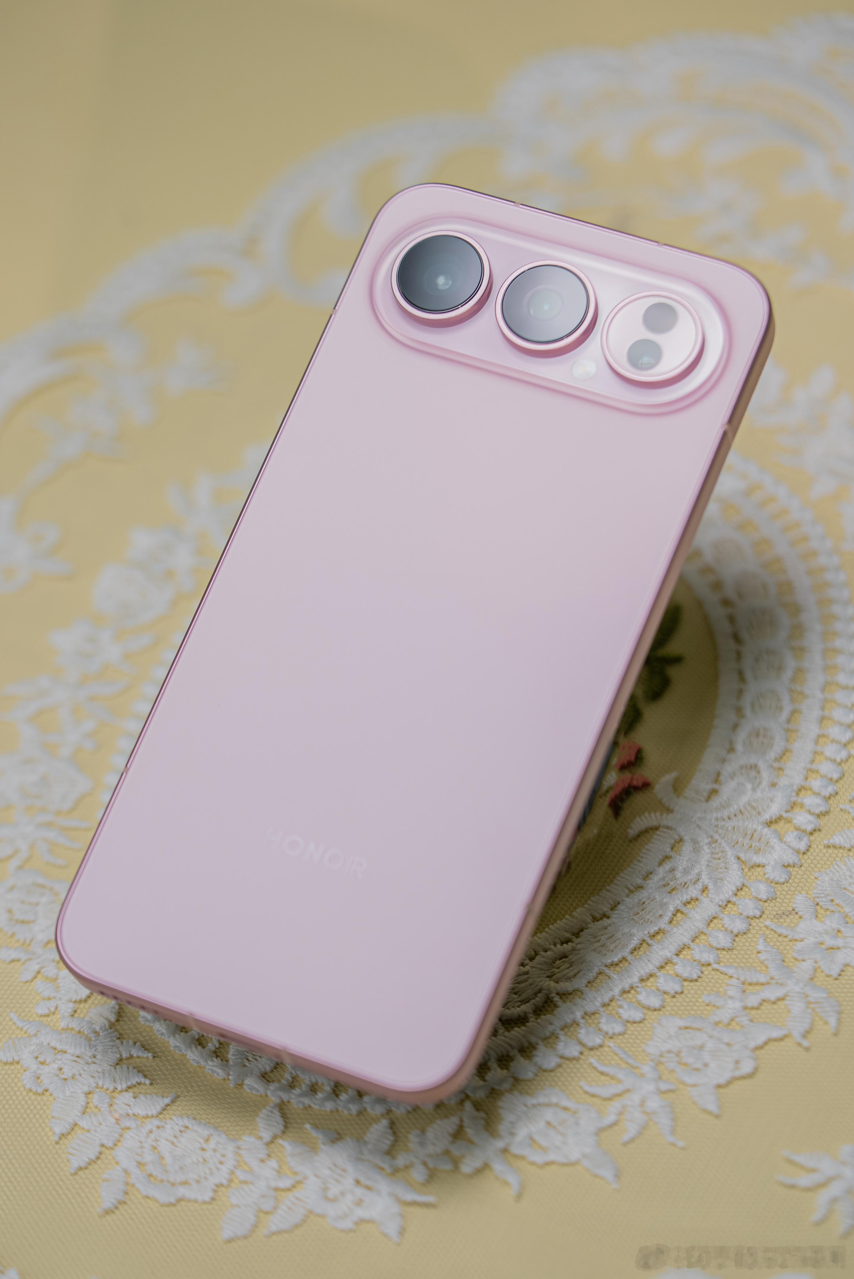HYK图赏|荣耀500这款是“月光银”版本。机身像被月光镀了层银一样。极窄黑