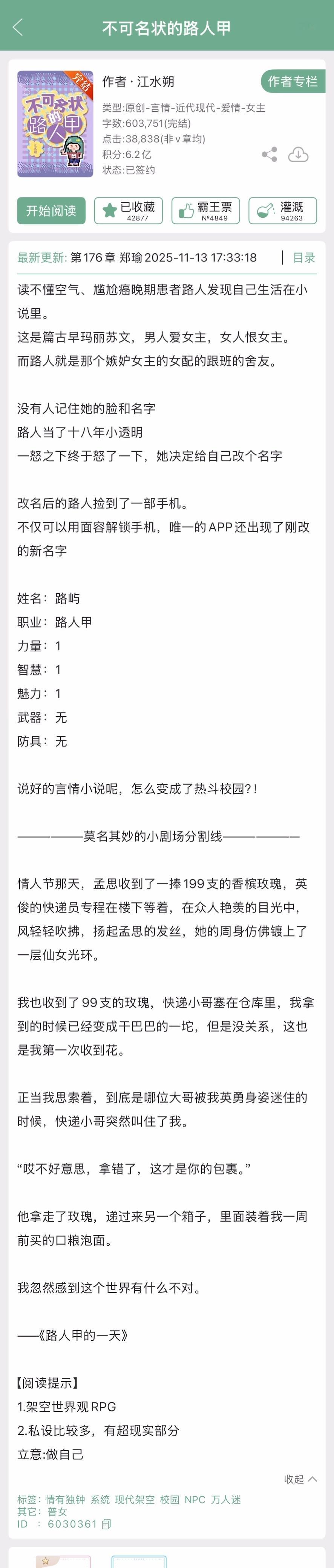 江水朔的《不可名状的路人甲》完结啦!现言,古早玛丽苏➕普女万人迷