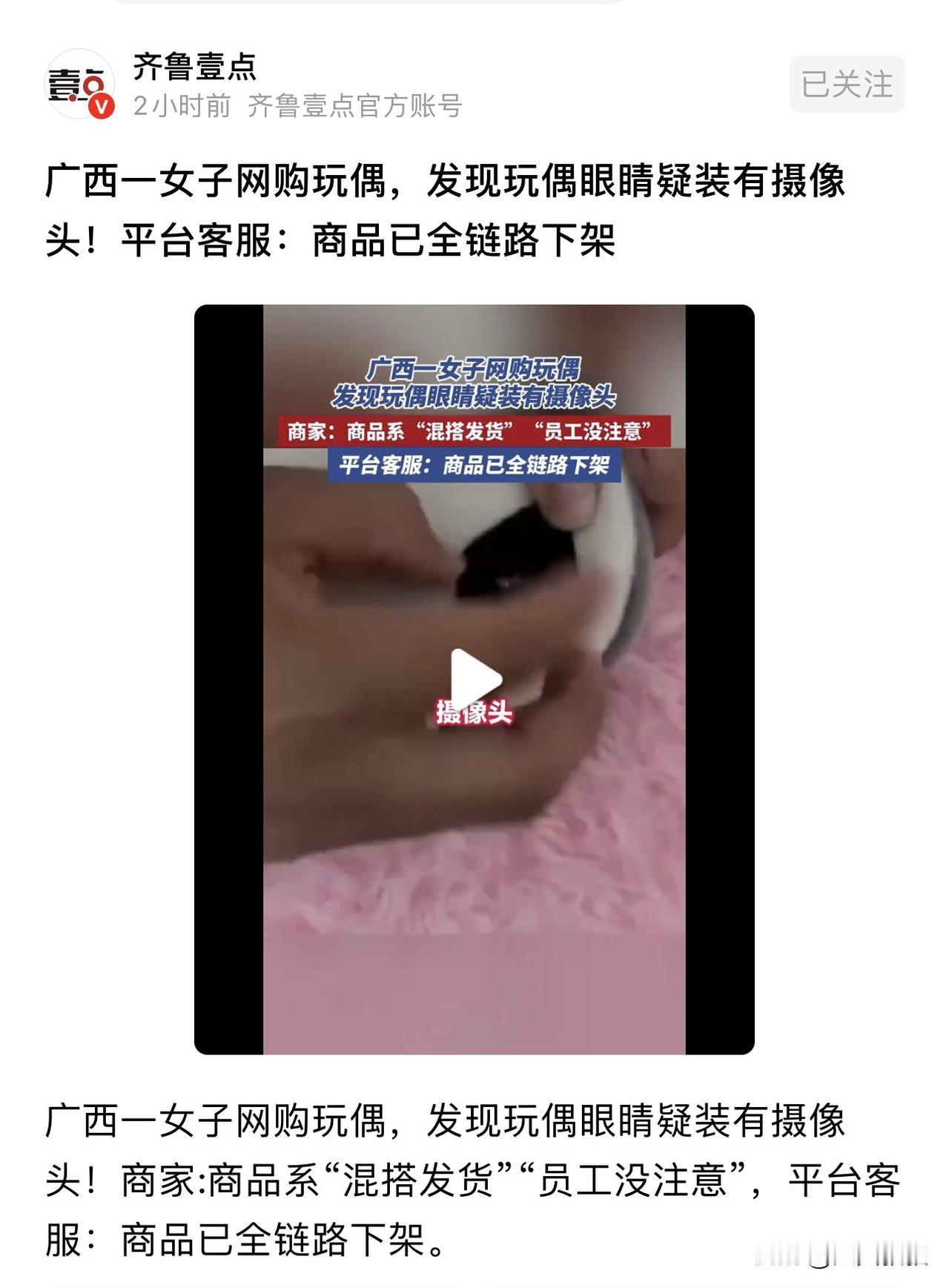 一女子网购了20个布偶娃娃给孩子玩,结果孩子在玩耍的时候,不小心把其中一个布偶眼睛给扣下来了,女子意外的发现,扣下来的这个布偶的眼睛竟然藏着一个摄像头,女子后怕不已当即找了商家,结果商家却表示混搭发货的,员工没注意。 据这名女子介绍,自己给孩子买了20个玩偶,因为孩子调皮,就用手去扣玩偶的眼睛和鼻子,结果其中一个玩偶眼睛直接掉了下来,女子打算把眼睛按回去,结果在按的时候,发现这根本不是一个眼睛,而是一个摄像头伪装的。 因为担心隐私遭到泄露,女子当即找到了商家质问,不过客服却表示,这是混搭发货的,员工没注意。目前,该商家已经下架了此款布偶。 这起事件并非简单的“发货失误”,而是严重侵犯消费者合法权益的侵权行为,商家需承担包括侵权责任、违约责任在内的多重民事责任。 按照《民法典》第一千零三十二条规定,自然人享有隐私权,任何组织或者个人不得以刺探、侵扰、泄露、公开等方式侵害他人的隐私权。隐私是自然人的私人生活安宁和不愿为他人知晓的私密空间、私密活动、私密信息。 王女士购买布偶的用途是供孩子玩耍,布偶作为将长期放置于家庭私密空间的物品,商家在其内部暗藏摄像头,本质上是通过秘密拍摄方式刺探他人私密生活,直接侵犯了王女士全家的隐私权。 其次,根据《民法典》第一千一百七十九条和第一千一百八十三条规定,侵害他人造成人身损害的,应当赔偿医疗费、护理费等为治疗和康复支出的合理费用;侵害自然人人身权益造成严重精神损害的,被侵权人有权请求精神损害赔偿。 王女士全家因隐私受侵害产生的心理疏导费用、精神抚慰金等,均有权要求商家赔偿。同时,依据《消费者权益保护法》第五十条,经营者侵害消费者个人信息依法得到保护的权利的,应当停止侵害、赔礼道歉,并赔偿损失,这进一步明确了商家的侵权责任承担方式。 从合同履行角度看,商家交付的商品存在严重瑕疵:王女士购买的是用于儿童玩耍的布偶娃娃,核心需求是安全、无危害,而暗藏摄像头的布偶不仅不符合“儿童玩具”的基本安全标准,还存在侵犯隐私的重大风险,属于典型的“瑕疵履行”。 商家主张“混搭发货、员工没注意”,不能成为免责事由——根据《民法典》第六百二十一条规定,当事人约定检验期限的,买受人应当在检验期限内将标的物数量或者质量不符合约定的情形通知出卖人;当事人没有约定检验期限的,买受人应当在发现或者应当发现标的物不符合约定的合理期限内通知出卖人。 因此,王女士在收到商品后短期内发现问题并及时告知商家,已履行通知义务,而商家未能发现布偶中暗藏的摄像头,说明其未履行基本的进货检查验收义务,属于“未尽到安全保障义务”,因此,商家需承担违约责任。 当然,也不排除一些买家在买到之后,安装了摄像头后故意退货,等到新的买家买到之后再利用这种方式偷拍其生活,所以,在网购这种玩偶之后,还是要做到仔细检查。 对此,你对本案有什么看法? —————————— 关注我,带你评析法律热点,关注冷暖人生。 文章原创,抄袭必究