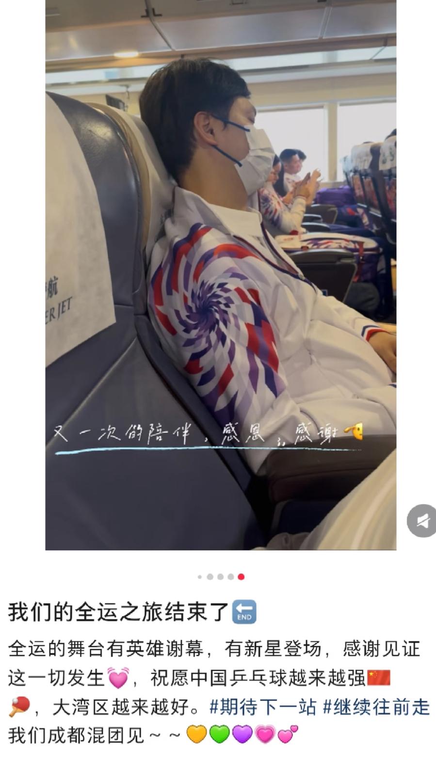 港队结束全运会之旅返程啦——成都混团见! 黄镇廷,陈颢桦等港队运动员 今日返程啦, 全运会团体真的不好打, 去年混团世界杯, 港队获得季军, 这次港队男团只击败了广西男团, 混双黄镇廷/杜凯琹也没有拿牌, 最有希望的混双遗憾啦, 但是单车🔬,游泳🏊♀️, 港队获得6金,够棒啦! 国内乒乓球群体大, 藏龙卧虎啊!