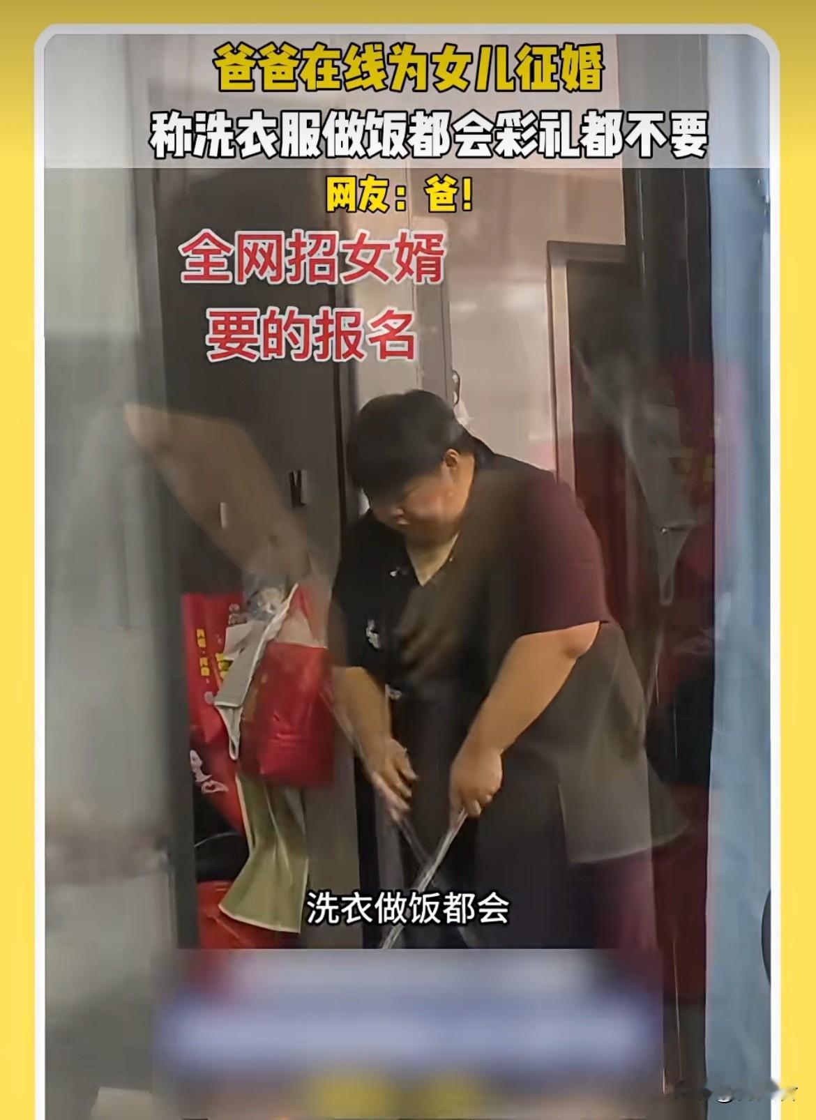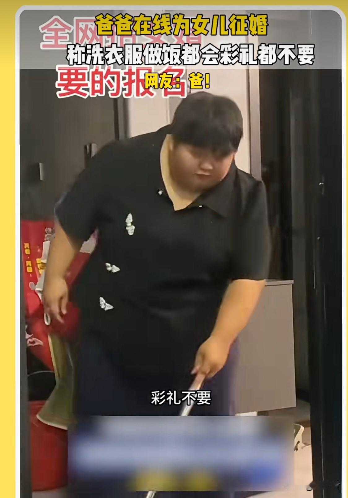 爸爸在线为女儿征婚 衣服做饭都会彩礼都不要 全网招女婿 感觉这位父亲是等不及想让女儿成家咯。