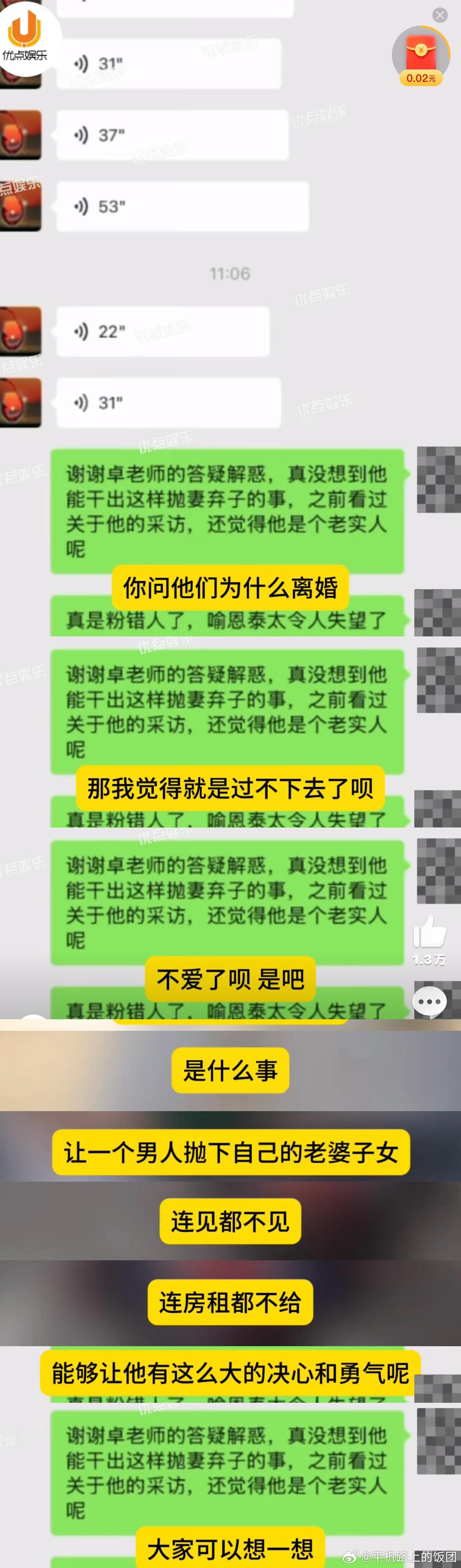 大家吃瓜不吃全吗昨天卓伟就说“是什么事情会让一个男人抛弃自己的老婆孩子连房租也不付,能够让他有这么大的勇气和决心”这句话不就是在暗指喻恩泰老婆出轨吗