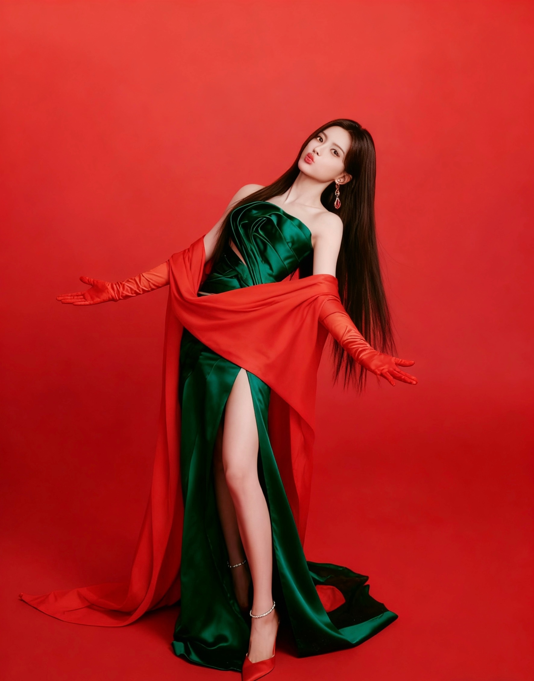 杨超越穿绿裙“杀疯了”,红绸甩成表情包现场?