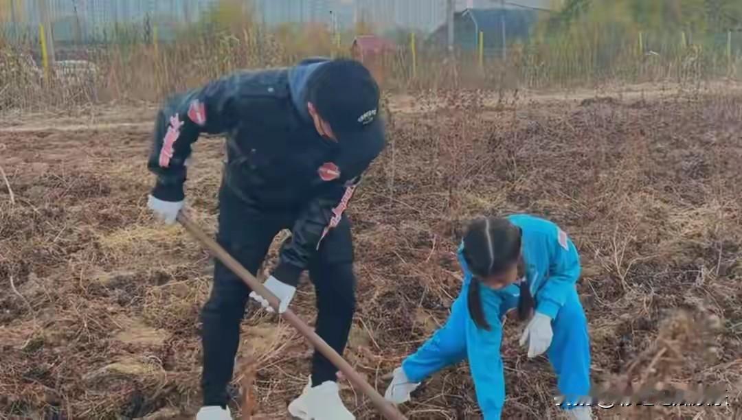 汪峰和女儿醒醒在地里干活,没想到醒醒这么接地气,一点都不矫情,穿得也很低调。