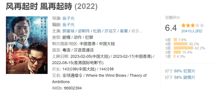《风再起时》投资方请到了好演员,但无奈的是剧本实在是太差了,故事太老套,虽然只上映了三天,但豆瓣网已经开出了6.4分的低分,且还有很大的下滑空间!
