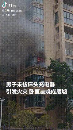 太危险了!人民日报都转发提醒,江西一男子忘拔充电头,卧室直接烧成灰烬,网友:看完赶紧检查插座! 从视频里面可以看见,原本整洁的卧室已经乌漆麻黑了,墙面被熏得漆黑,床铺、窗帘等都被烤焦了焦黑焦黑的,地面散落着烧毁的家具碎片。 户主事后回忆,当天因为自己出门太急着办事,完全忘了床头柜插座上还插着充电器。 等他接到邻居电话赶回家时,卧室已经浓烟滚滚了,火苗还顺着窗帘往天花板蔓延。 “就因为一时疏忽没拔插头,好好的卧室全毁了!”他看着烧毁的房间,很是后悔。 消防人员接警后迅速赶到,分两组展开处置:一组架设水枪扑灭明火,另一组排查隐患防止复燃,历经8分钟成功控制住火情。 好在这次火只集中在男子的卧室,很幸运的是这场大火没有造成人员伤亡,但是男子的损失不少,屋内的床品、衣物、电器等财物几乎烧完了。 还有网友看完视频后表示“不敢信”,觉得“一个充电头怎么会引发这么大火灾”。 其实仔细看消防通报就知道,并非充电头本身质量问题,而是长时间通电的充电端过负荷发热,引燃了旁边的床垫,再加上窗帘等是易燃物,会助力火势才迅速扩大。 这是什么原理呢? 充电器长时间通电时,即使没有连接设备,内部电路也会处于待机状态,持续产生热量。 如果周围有床垫、衣物等可燃物,热量无法及时散发,就会慢慢累积,达到可燃物燃点后引发火灾,这就是常说的“电气火灾”。 生活里这类因为疏忽而发生的火灾其实并不少见。 广东佛山曾有一位住户出门时没拔充电线,充电线接触被褥后起火了,主卧直接被烧得精光;还有人睡前给手机充电,把充电器压在枕头下,半夜就引发了小火。 老话说“隐患险于明火”,男子的经历就是惨痛的教训,但是现在还是有不少人,会觉得自己“忘拔插头没事”“充一晚上电没关系”,却忽略了这些日常小疏忽背后的大风险 ——手机充电器,电动车充电器,电暖器等设备,长时间通电都可能成为火灾的隐患。 但我有个疑问,除了及时拔插头,日常还有哪些简单有效的方法,能预防这类电气火灾呢? 信息来源:人民日报