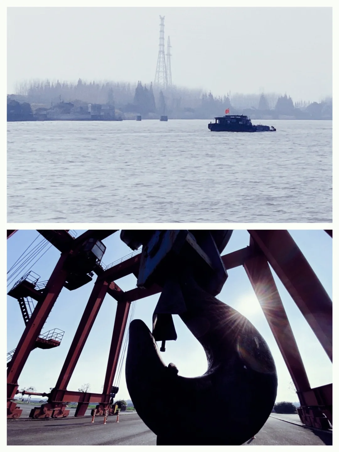 这里也曾是浦江上一个繁忙的渡口,而今只剩巨大的红色龙门架矗立在江边码头。