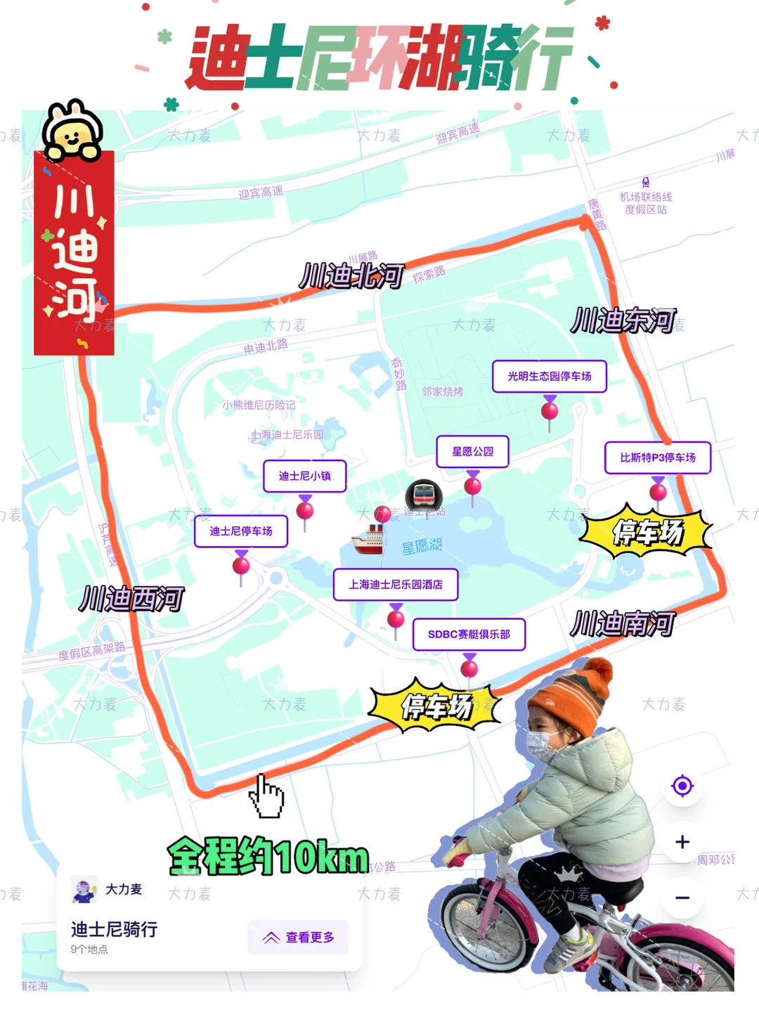 ② 迪士尼乐园内、小镇内、星愿公园都无法骑行,具体环湖骑行路线详见下文攻略;