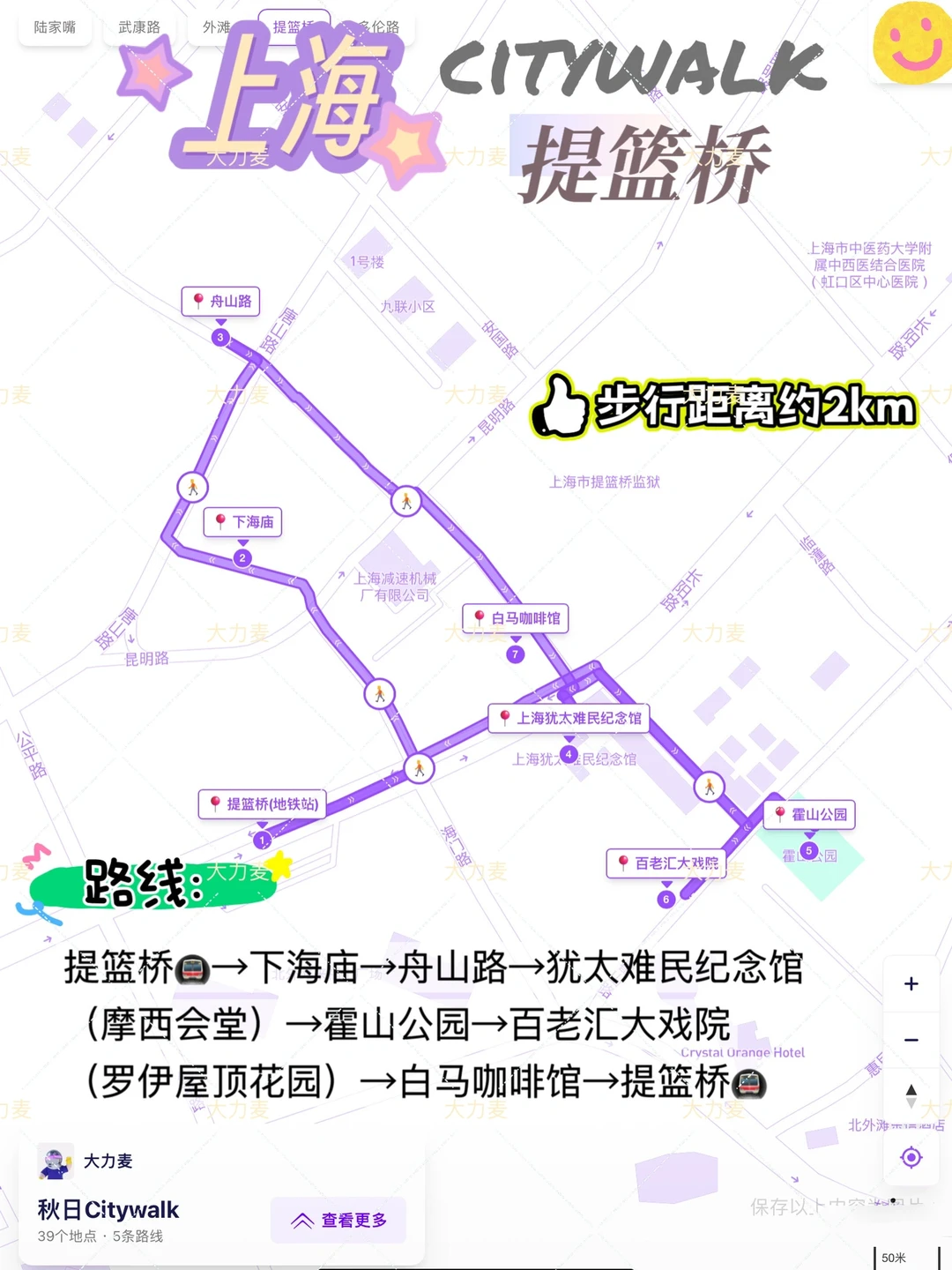 📍路线:提篮桥🚇→舟山路→犹太难民纪念馆→霍山公园→白马咖啡馆→提篮桥🚇