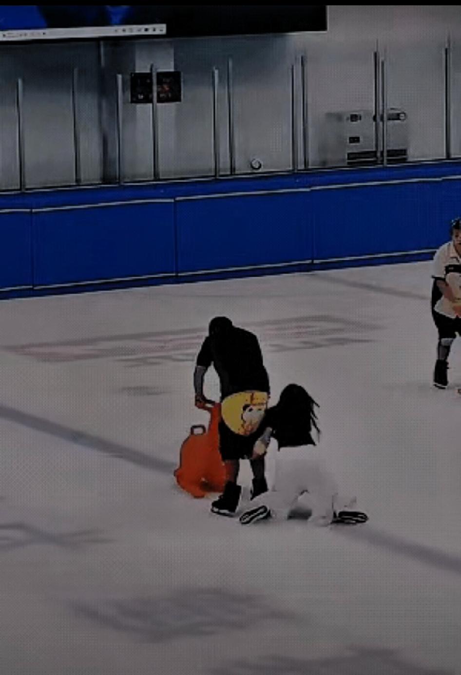 最近滑冰场这事,看着有点好笑,过后又觉得挺尴尬的——一个女孩上冰后没控制好平衡,