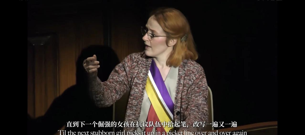看《Suffs》的时候完全控制不住眼泪 女士们翻译的特别好,用了“雌起”“英雌”,并且贴心地标注很多科普。 之前知道黑男投票权比白女早的时候,我都震撼了,为什么会这样…… 我观看的时候哭到疯狂吸鼻涕,她们抗争的过程太艰难了,虽然之前阅读过几本社科还有《妇女参政论者》,知道会遇到什么阻碍。 但还是好难过,分不清是悲伤、愤怒还是不甘心,可能都有吧,反正眼泪擦不干净。 看到爱丽丝说别人老古董,最后被称为老古董,真的好欣慰。 因为时代和思想一直在迭代,每代人接过旗帜,都会去争取更多的权利,直到站到权力层为止。 所以,让我们边攀爬边托举同伴,不断向前进、向上走。 suffs