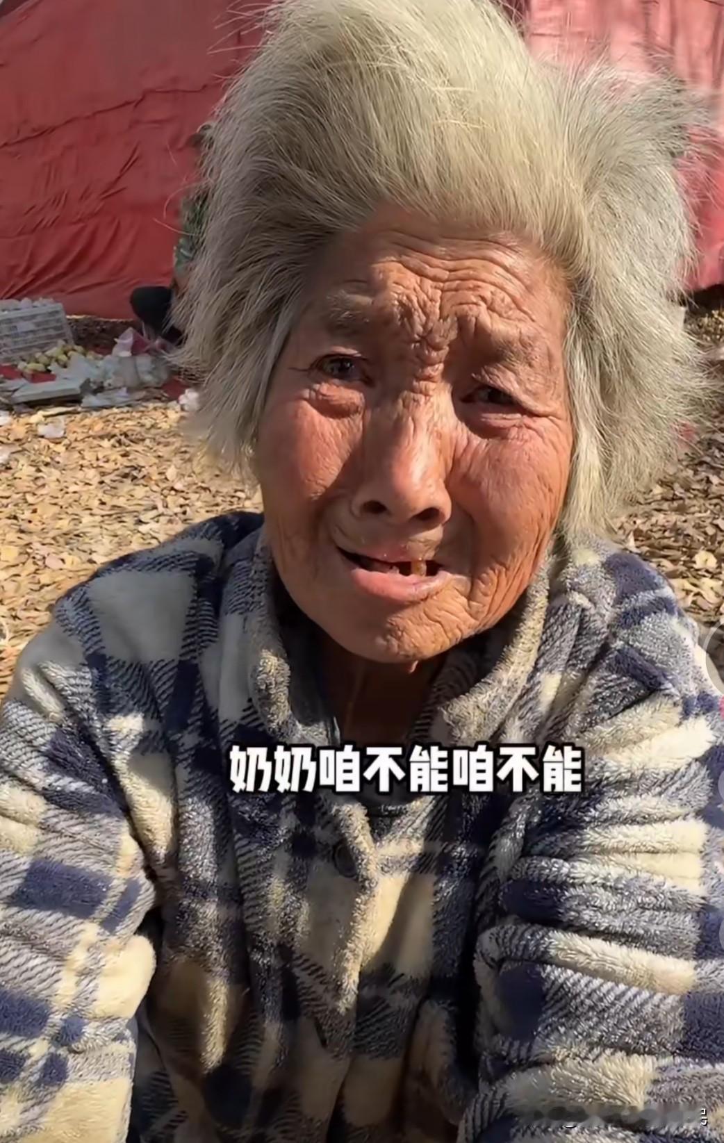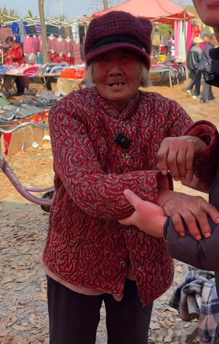 看90岁的奶奶用100块钱都买了什么? 说给这位奶奶100块钱,这位奶奶说什么也不要,但是一说给她当孙子,她就很开心,扯着手不放,说多少钱都买不来一个孙子。 走路的时候用手扶着她,她说:不用扶,我还能干得动,在地里我就种点东西自己吃,什么都不问自己的孩子要。他种了花生,地瓜,院子里还种了菜,这些东西耽误不了吃,这位90岁的奶奶其实就是自己动手,丰衣足食。 十元的猪肉 五元的蘑菇 三元的黄豆芽 五元的豆角 四元买了一个大头菜,就是包菜 4块5买了一板香蕉,拿了两个橘子,凑成了5块 五元的皮冻 五元的葡萄 5块的山楂 15元的饼干 九元买了一个帽子 十元买了两条内裤 25元买了一个小花袄 五元买了两颗白菜 5元照了一张相片 15种物品共花费116元 买完帽子要走的时候,老奶奶突然说:我买一个内裤。她说并不是说现在要穿,是想自己死了以后放在棺材里穿。死了以后的其他衣服已经准备好了,内裤现在买上,以防将来来不及。 她身上穿的这个格子的上衣是老奶奶花了十元买的。这个季节穿是很单薄的,看得出来她很冷。 奶奶说她从来没买过这么多东西,她买就是买能当饭吃的,买煎饼吃,其他的东西都不舍得买,没有钱买。 在菜摊上,奶奶指着菜花说:把这个大头菜给我装上一颗。告诉她这个不是大头菜的时候,奶奶不好意思的笑了,她说:我实在不知道这是什么,因为我也没有买过菜,也不知道什么菜好吃。 唉,老人把自己的后事都打算好了,在阳间没有能力改善自己,去阴间还是想让自己体面一点,唉,不容易啊! 老奶奶说“以后我不指望你来看我,但是你有时间过来转转,你也是我的亲人”。