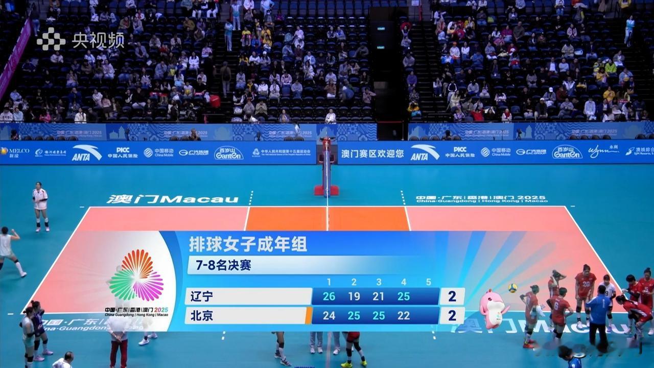 直播中全运会女排7/8名决赛 北京女排对阵辽宁女排 第一局辽宁女排26:24北京女排 第二局辽宁女排19:25北京女排 第三局辽宁女排21:25北京女排 第四局辽宁女排25:22北京女排 决胜局辽宁女排,,北京女排 最终辽宁女排,,北京女排