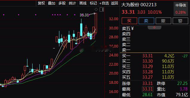 今天第二只涨T标如期而至!$大为股份 sz002213$