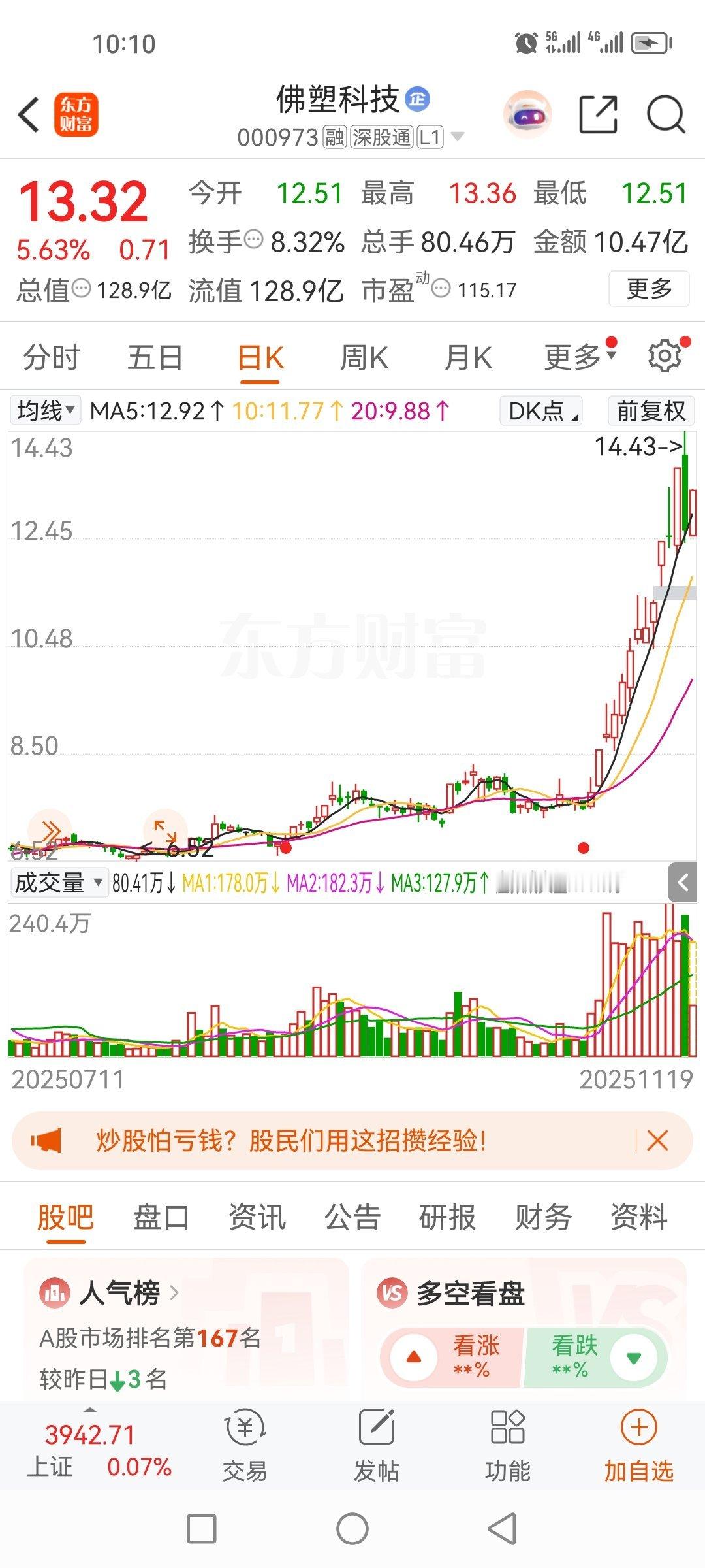 14日分享的佛塑科技000973一直在网上走,昨天是另外,今天依然是太阳高高挂起,艳阳高照!