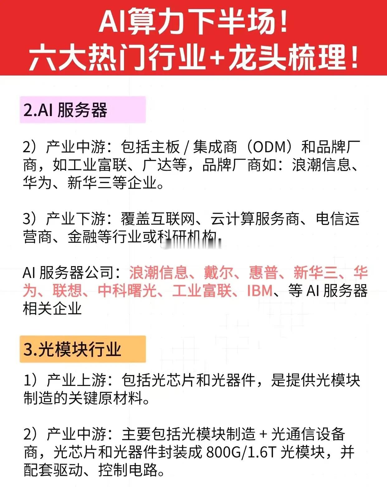 AI算力六大热门行业龙头梳理AI算力概念利好事件:11月21日华为将推出AI算力资源调度技术,能把算力硬件利用率从行业平均30%-40%提升至70%。百度Q3财报首次披露AI业务收入,同比增速超50%远超预期——AI云、AI应用、AI原生营销服务全面开花。算力概念低位龙头代表有哪些?算力概念的低位龙头企业多分布在芯片、服务器、数据中心、液冷等算力核心细分赛道,这些企业或因股价回调、估值偏低处于低位,且在细分领域具备显著技术或规模优势。相关概念低位龙头代表:服务器龙头紫光股份、数据中心宝信软件、算力芯片安路科技、液冷概念佳力圖等等。理财有风险入市需谨慎,资料取材网络仅供参考,不能作为投资依据。
