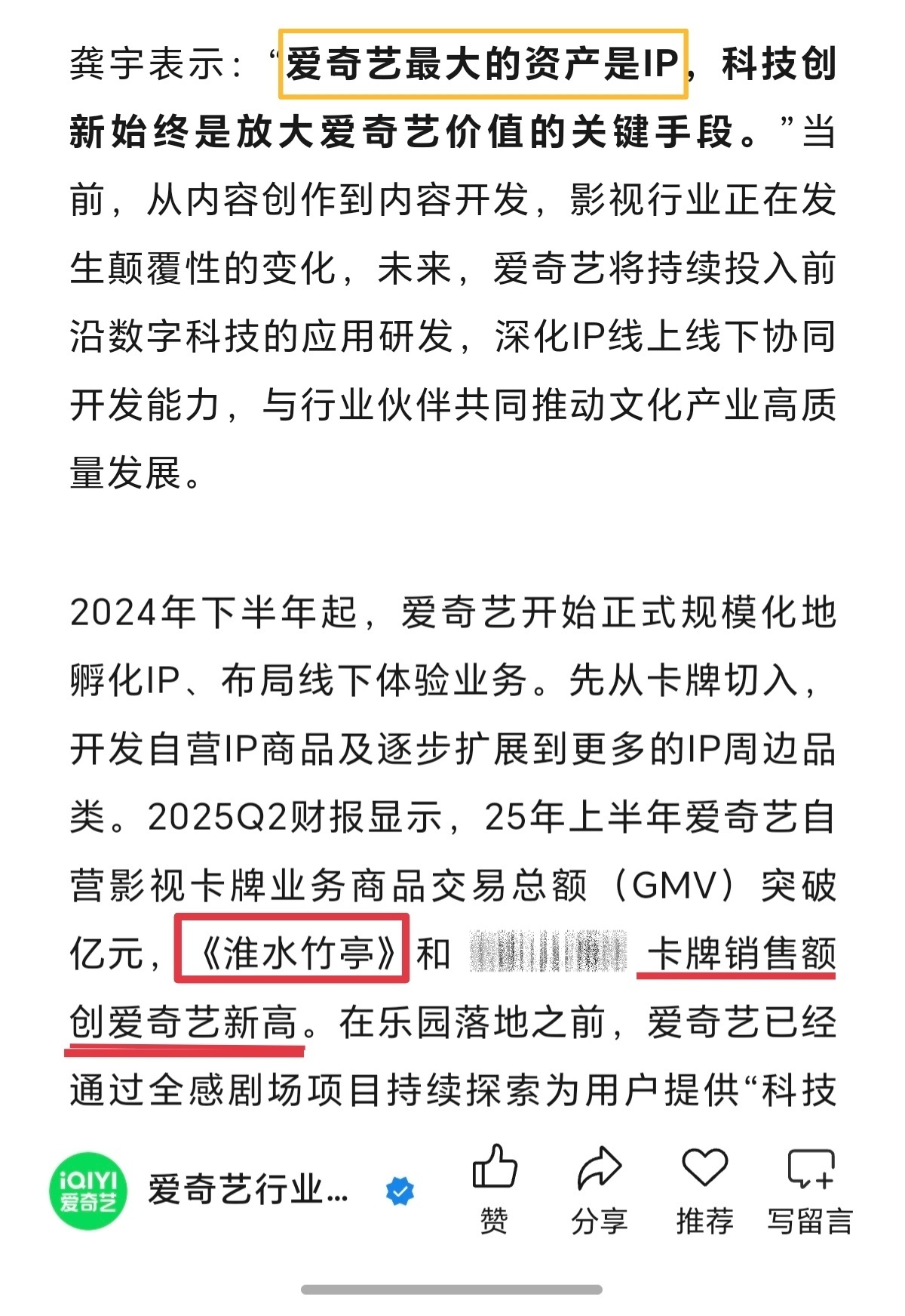 刘诗诗淮水竹亭多次登上爱奇艺财报明确表示盈利,多次打破平台纪录。唯一一位连登爱奇