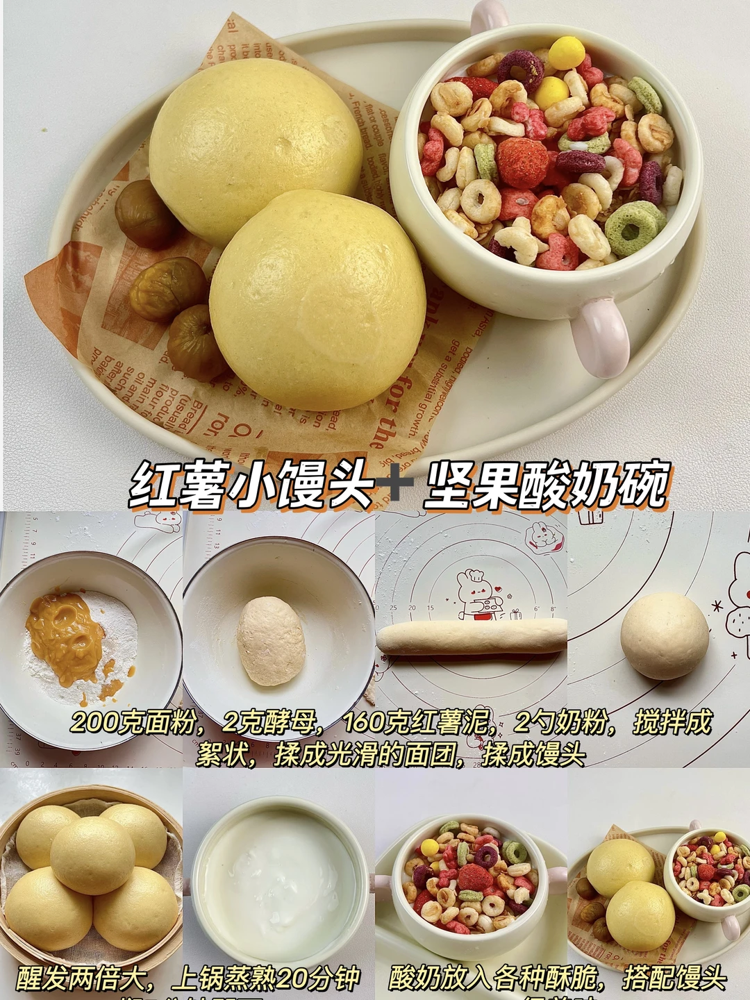 漂亮宝宝要吃漂亮饭!今天给妈妈们分享6款营养好吃的发酵面食早餐搭配,营养均衡,大人孩子都可喜欢了~ 🔸南瓜蜜豆卷➕山楂苹果羹 🔸雪梨小馒头➕土豆炖粉条 🔸山竹小馒头➕花菜炒火腿 🔸红薯小馒头➕坚果酸奶碗 🔸蘑菇小馒头➕香甜玉米羹 🔸红枣甜甜圈➕香菇炖火腿 ✅具体做法参考图文教程哦~