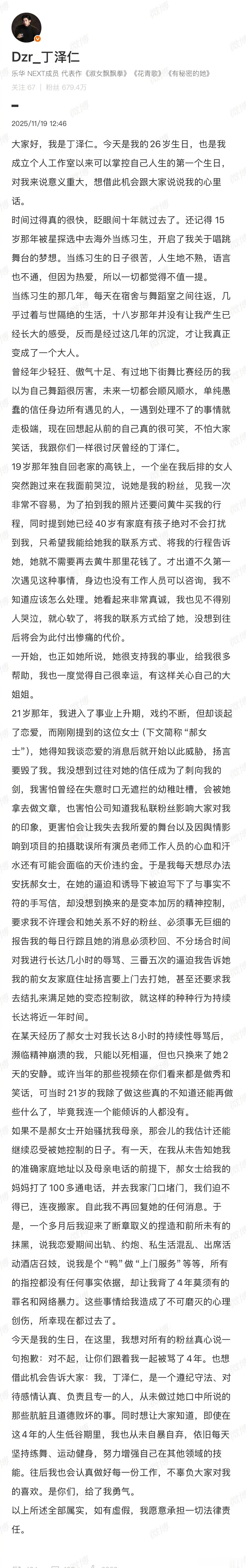 还有人记得丁泽仁吗?发长文回应“唯一的姐”