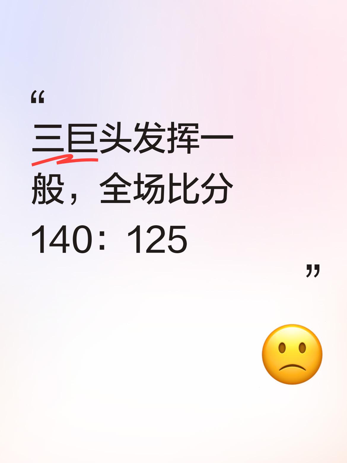 这场比赛三巨头发挥较为一般,不然以他们的实力,分差肯定会比最终的全场比分140:125更大 。 前半场显然詹姆斯还没有适应,后半场我们熟悉的詹姆斯回来了。 东契奇发挥也不算好,好像他和詹姆斯不太兼容。由他领衔时随心所欲,有利于发挥他的综合优势,今天投篮也不太准。不管怎样,赢了就好