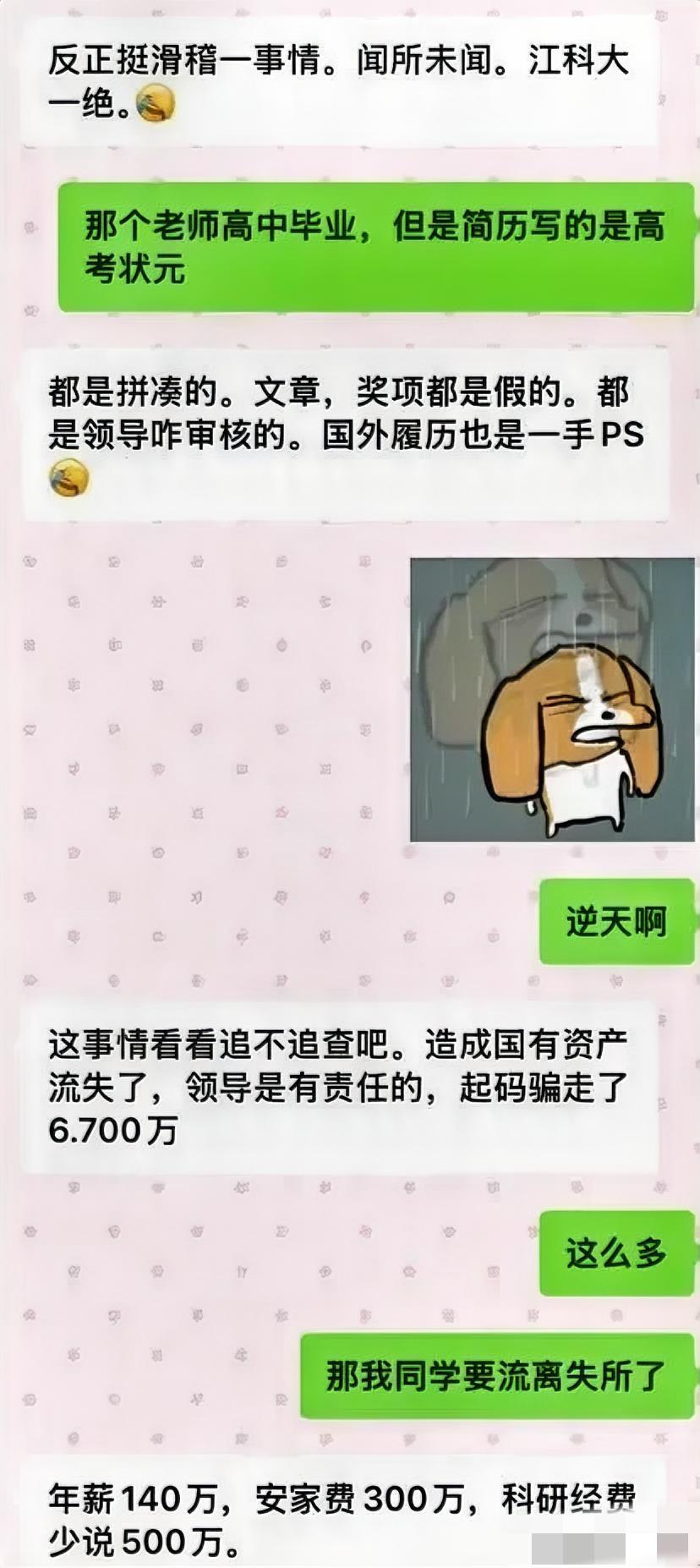 年薪百万的博导,居然是个“冒牌货”? 公开资料显示,2023年江苏某高校引进的人才郭某,2025年5月被发现学历造假,现在解聘。耀眼的高考状元、海外留学人才,都是一手造假。令人震惊的是,网传郭某只有高中学历,虽然暂未找到官方盖章,估计也不会空穴来风。 那么问题来了,他是怎么指导博士团队们学习工作的呢? 据说郭某专业领域是纳米材料。纳米领域可是高科技专业,需要反复验证数据、反复实验,熟练应用各种理论公式,严密科学论证结论,郭某到底是怎么开展这系列工作的?那些先进的实验室他是如何管理使用的?能不能独立设计实验并解决技术难题?徒手搓出来的简历如何支撑高精尖研究方向? 假如郭某虽然拿了高中学历,但是自己在某一方面有天赋,比如和比尔盖茨一样,动手能力和学习能力极强,会不会在纳米领域达到“首席科学家”的造诣? 这场荒诞剧引人深思,到底是学历束缚了“天才”,还是南郭先生混入了高材生团队?又或者有一种可能,博导一般不导? 无论哪一种可能,都应该引起各方的反省。唯学历论还是唯能力论,都不足以构成一个健康的学术环境,更无法为高科技发展提供充分的燃料。 一个郭某被发现,还有多少“郭某”藏污纳垢? 学术圈整治不能只停留在头痛医头脚痛医脚层面,似乎应该考虑重新回顾底层逻辑,给有能力的人出路,给有毅力的人以支持。 人尽其才,方见欣欣向荣。 图片来自网络报道截图