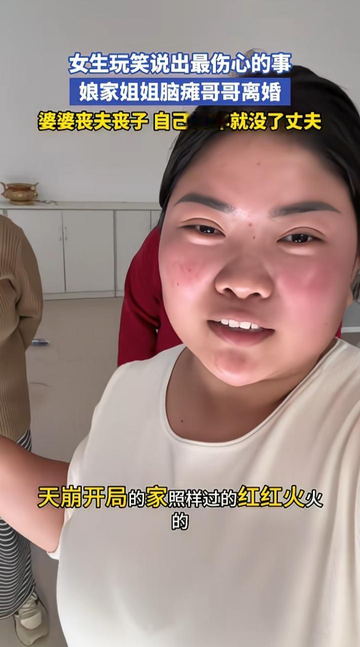 女子晒自己天崩开局的家:娘家姐姐脑瘫哥哥离婚,婆婆丧夫又丧子,自己才25老公去世,留下一个两岁的娃 但她笑着说,我依然对生活充满希望,就这样一个家,我带着她们过的红红火火的,看看能行不能行吧 能行,当然能行!她真的很乐观,只要希望的种子在心间种下,它一定会破土发芽,带着她们向阳而生,有冲破一切阻拦的力量。纵然生活给了她很多苦难,她能笑着去面对,有这样豁达的心态,遇到任何困难她都能克服,生活肯定会越来越好。 图片及素材源自网络