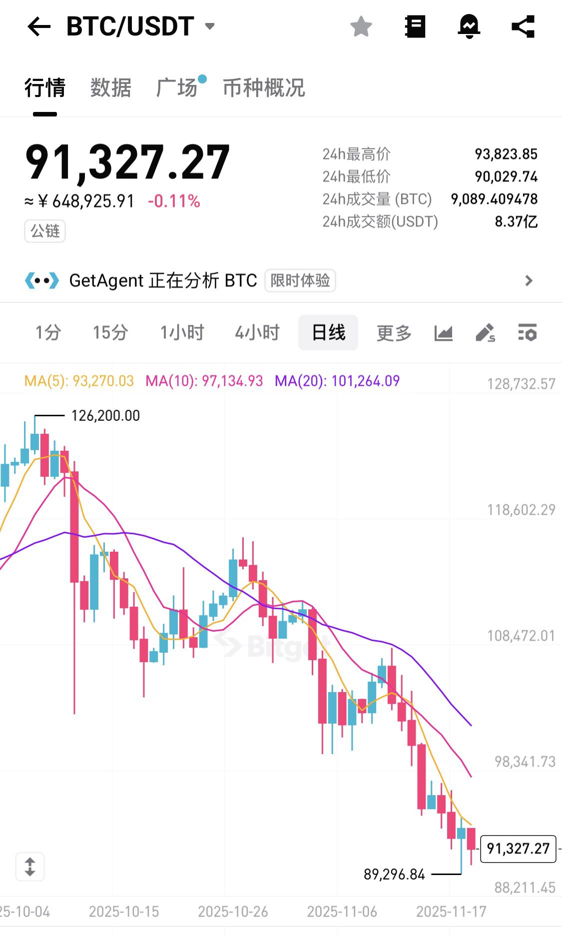 大家要知道美股上涨背后的逻辑因素,包括全球股市。 ~~~~~ 1、从货币政策的角度来讲,2023~2025年就是大家对美国“降息预期”的上涨; 2、从产业发展的角度来讲,2023~2025年就是大家对AI(人工智能)产业的布局。 所以,2023~2025年美国股票市场的牛市行情,其实就是AI泡沫堆积的牛市行情,自然也包括BTC币市场。 (这两点因素也会“反向”导致美股、BTC币市场下跌。) ~~~~~ 当大家开始讨论AI泡沫的时候,自然是存在“泡沫事实”的。 所以,英伟达创始人黄仁勋自己也在高位价格频繁卖掉自己公司的股票。 前些天,继日本首富、软银孙正义后,又一亿万富翁出手,清仓了AI领域的核心龙头股——英伟达。 ~~~~~ AI产业的企业股票下跌,引发美股下跌。 美股,从2025年10月底创历史新高之后,逐渐一路下跌调整态势。 BTC币市场,也是2025年10月底跟随美股下跌调整而下跌,到目前为止还没有真正“止跌”。 目前来看,还没有“特大利好因素”,带动美股、黄金、BTC币市场“止跌大涨”。 美股走势 黄金 BTC ETH ~~~~~ ——飞鸽说 2025.11.19