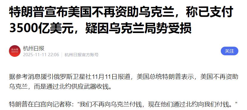 俄乌战火烧了1000多天,美国终于品出不对劲了!原来中国三年前就选对了,当初他们以为能速战速决拖垮俄罗斯,谁知冲突竟滚成二战后欧洲最大的战争漩涡,自己砸进去的3500亿美元打了水漂,盟友闹掰了,对手反而更硬了…… 美国这3500亿美元花得可真不冤枉,说是援助,实则藏着不少私心。 据特朗普曾经透露,美国早就和乌克兰签了矿产协议,想通过援助换稀土、钛这些关键资源,还大言不惭说"得到的价值远超3500亿"。 可乌克兰总统泽连斯基早就拆穿了这套把戏,直言美方曾要求用5000亿美元矿产抵债,被他直接拒绝。这边钱花出去了,资源没拿到多少,战场上更是看不到胜利的曙光,美国这波操作活脱脱把自己从"救世主"玩成了"冤大头"。 更让美国头疼的是盟友们早就闹掰了。德国作为欧洲经济引擎,在对乌援助上始终扭扭捏捏,一会儿放行14辆豹二坦克,一会儿又赶紧画红线说不提供战斗机和地面部队。 民调显示46%德国民众赞成援乌坦克,43%明确反对,支持者和反对者就差那么一点点。 这种纠结背后全是现实利益的考量,能源危机让德国不得不重新审视对俄政策,之前为了反对天然气限价还不惜得罪欧盟盟友,现在美国想把包袱甩给欧洲,德国这种"挤牙膏"式的援助态度,显然给不出美国想要的答案。 而国际能源署数据显示,今年前三季度俄罗斯对欧管道天然气出口下降45%,液化天然气出口下降10%,可人家转头就把能源出口重心转向亚洲,照样赚得盆满钵满。 美国倒是趁机把对欧液化天然气出口量提了60%,占了欧洲市场六成份额,可这种"趁火打劫"的做法,只会让欧洲盟友心里更不是滋味。俄罗斯不仅没被拖垮,反而在外交和经济上找到了新的突破口,美国这波"围堵"算是彻底打了水漂。 回头看看我们,三年前就选对了路,保持中立、劝和促谈的立场现在看来简直是神来之笔。 不跟着美国起哄制裁,也不偏安一隅看热闹,而是推动全球安全倡议,在俄乌之间搭建沟通桥梁。既和俄罗斯保持正常的贸易往来,去年双边贸易额再创新高,又和欧洲维持着紧密的经济联系,这种不选边站的务实态度,反而成了各方都能接受的"稳定器"。 美国现在既没拿到想要的地缘利益,又消耗了大量国力,还把盟友关系搞得一团糟,如今特朗普叫停直接资助,不过是霸权光环褪色后的必然选择。 这场仗打了1000多天,美国终于明白,不是所有事情都能靠美元和导弹摆平,而中国早就用行动证明,务实中立才是化解危机的正道。