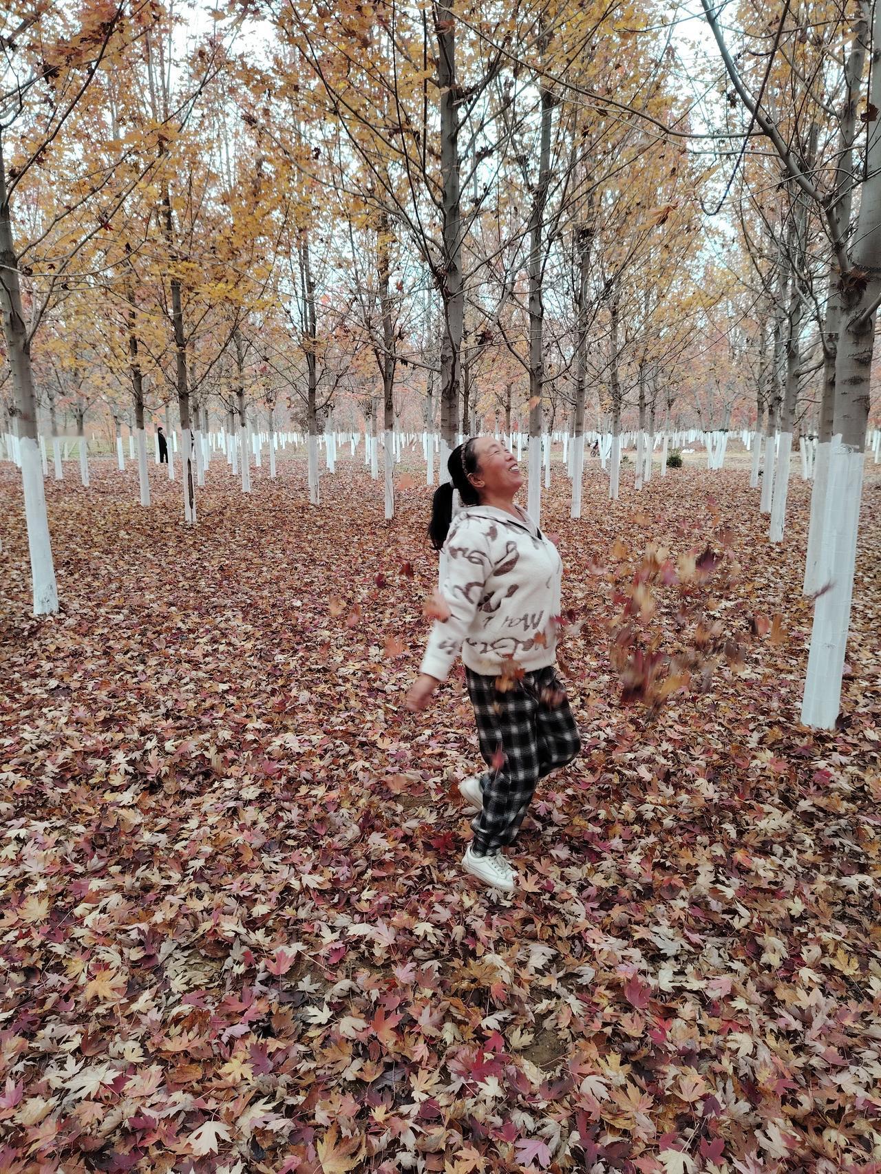 在这枫树林里,感受到了枫树的美,拍了一张最美的照片。