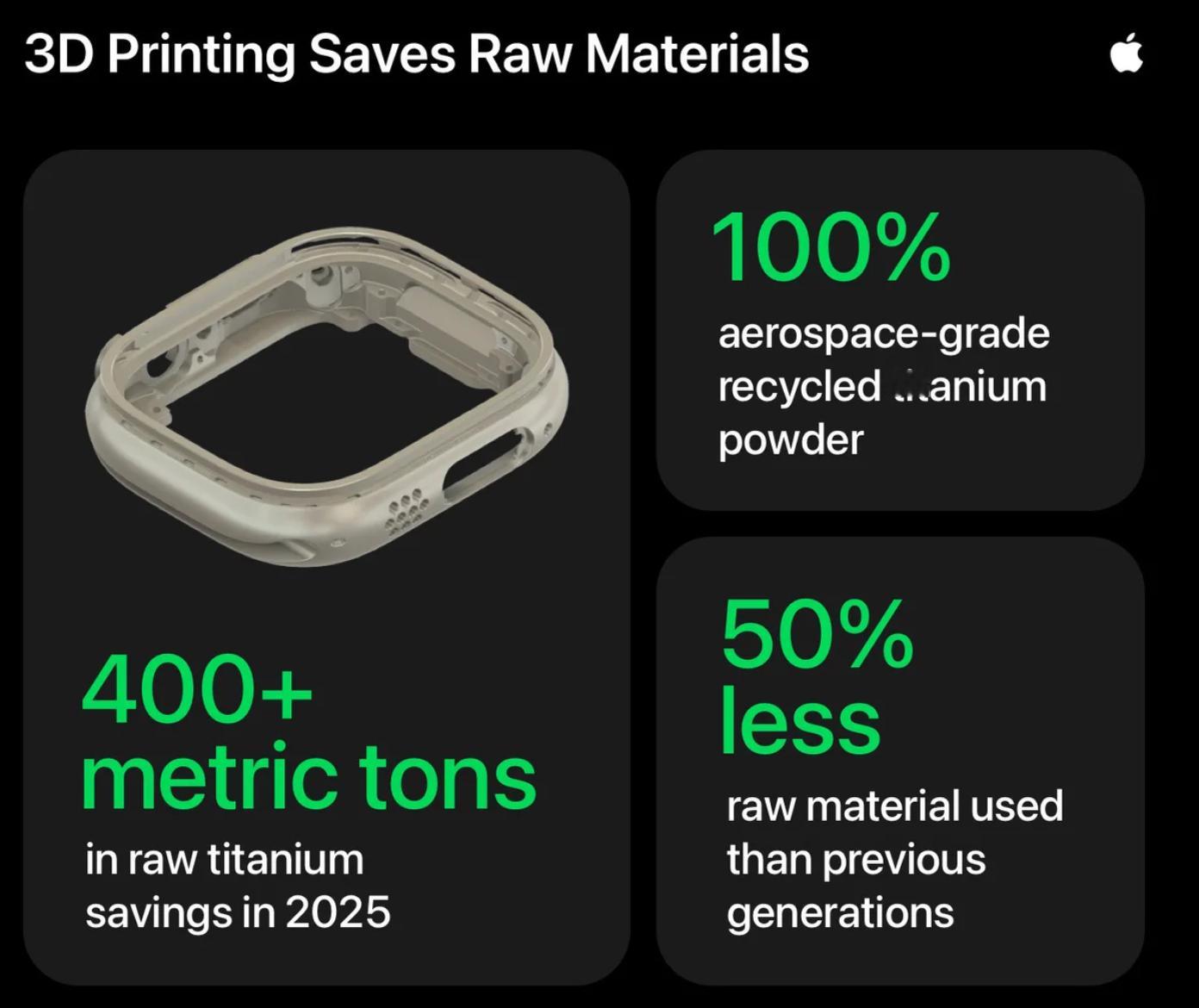 今年的Apple Watch Ultra 3和Series 11的钛金属表壳,已经全面改用3D打印技术。在超过 20小时的打印制程中,表壳由 900 多层100%再生的航空级钛金属粉末精准堆叠而成,直接把原材料用量缩减了一半。苹果用十年时间把实验室技术成功量产,证明3D打印不再是噱头,而是真能用在消费电子大规模生产上。这波制造工艺的升级,不知道会不会很快被各家厂商抄作业了。