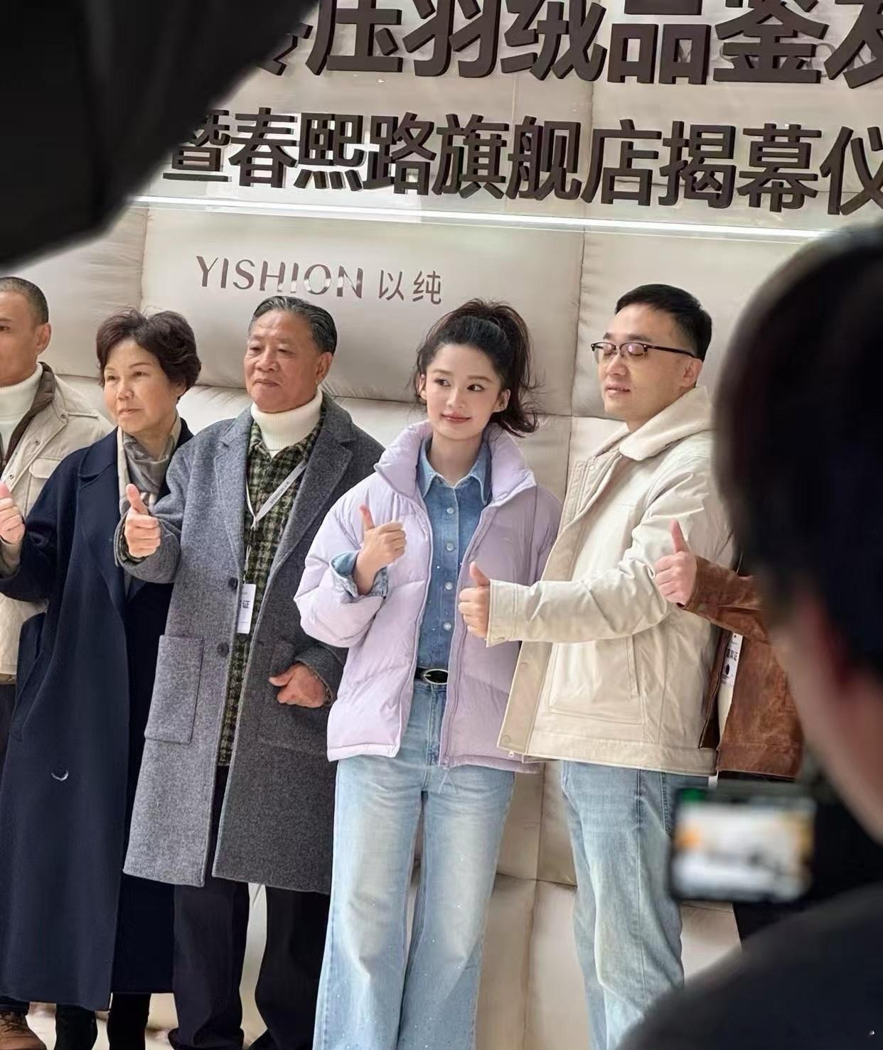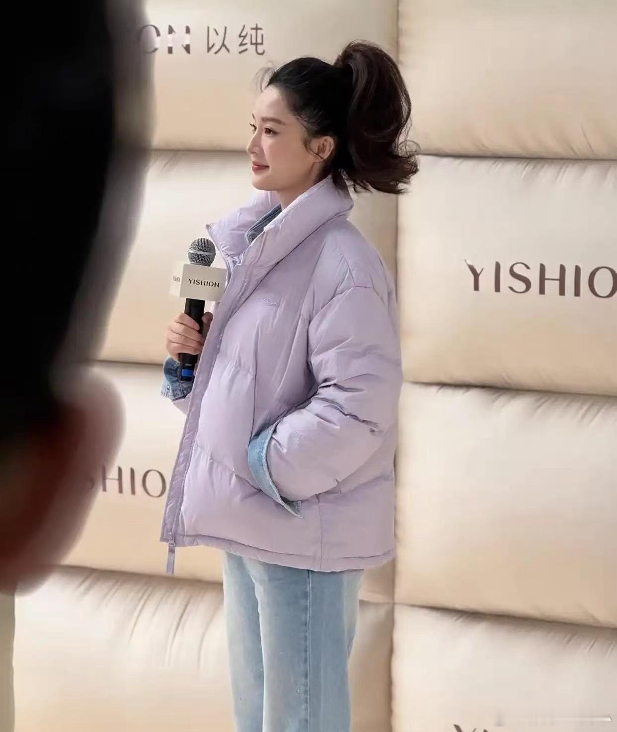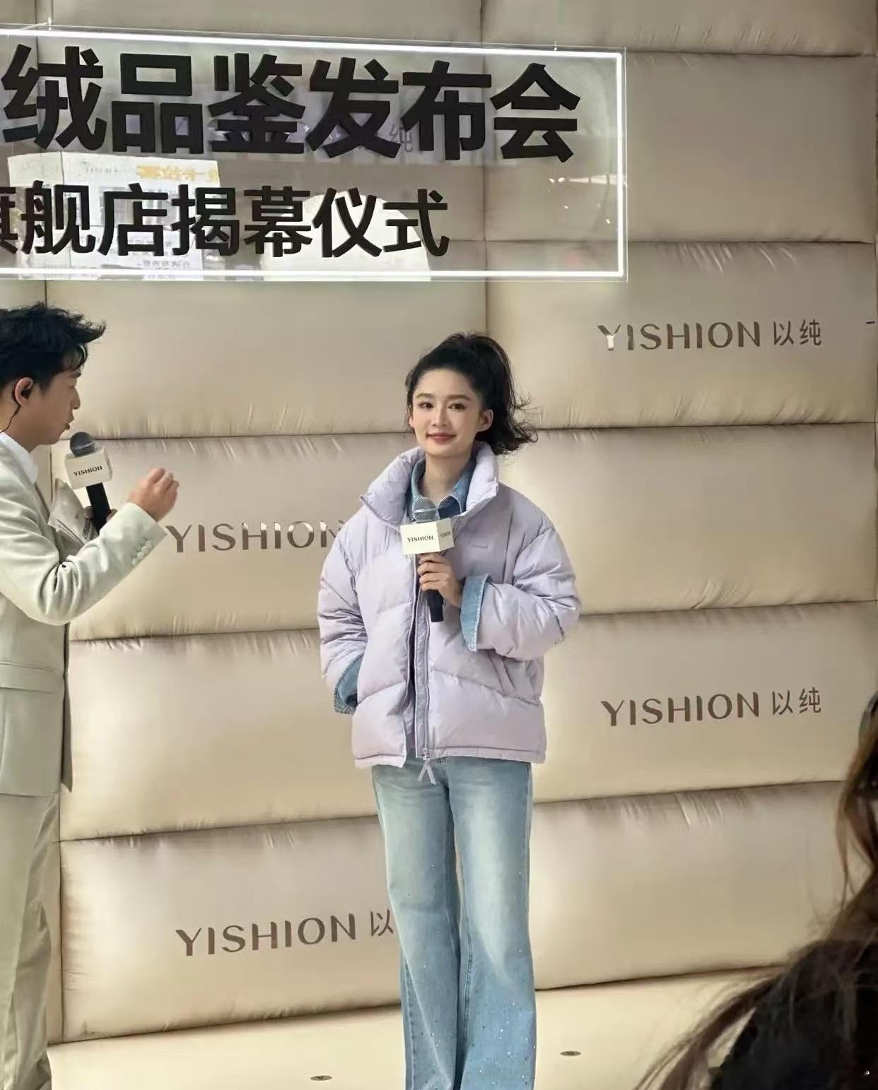 11月18日,李沁出现在成都某品牌活动上,她上身着香芋紫色短款羽绒服下身穿水洗蓝